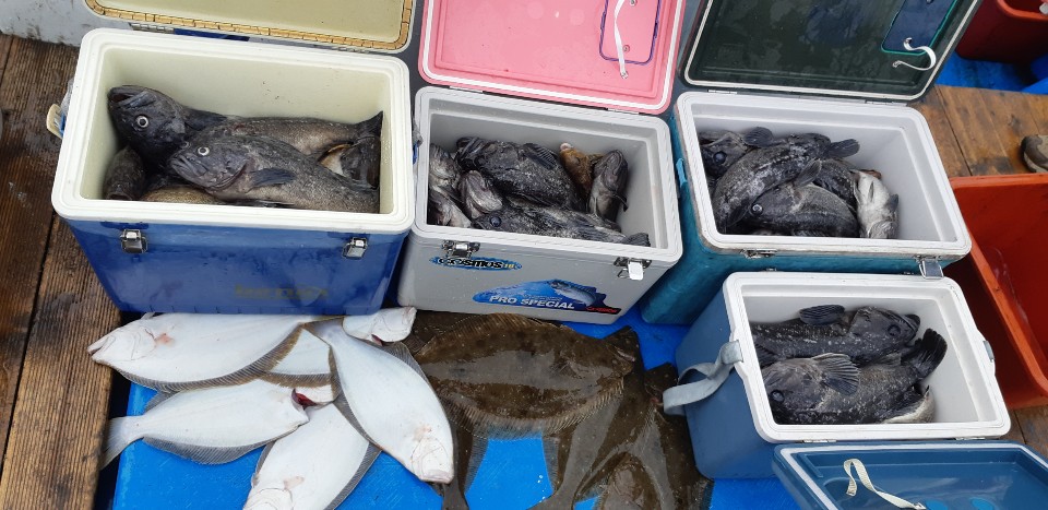 승리호 김선장님 오늘은 5분의 조사님과 왕우럭&광어 만~족~한 쿨러러 조황입니다!!