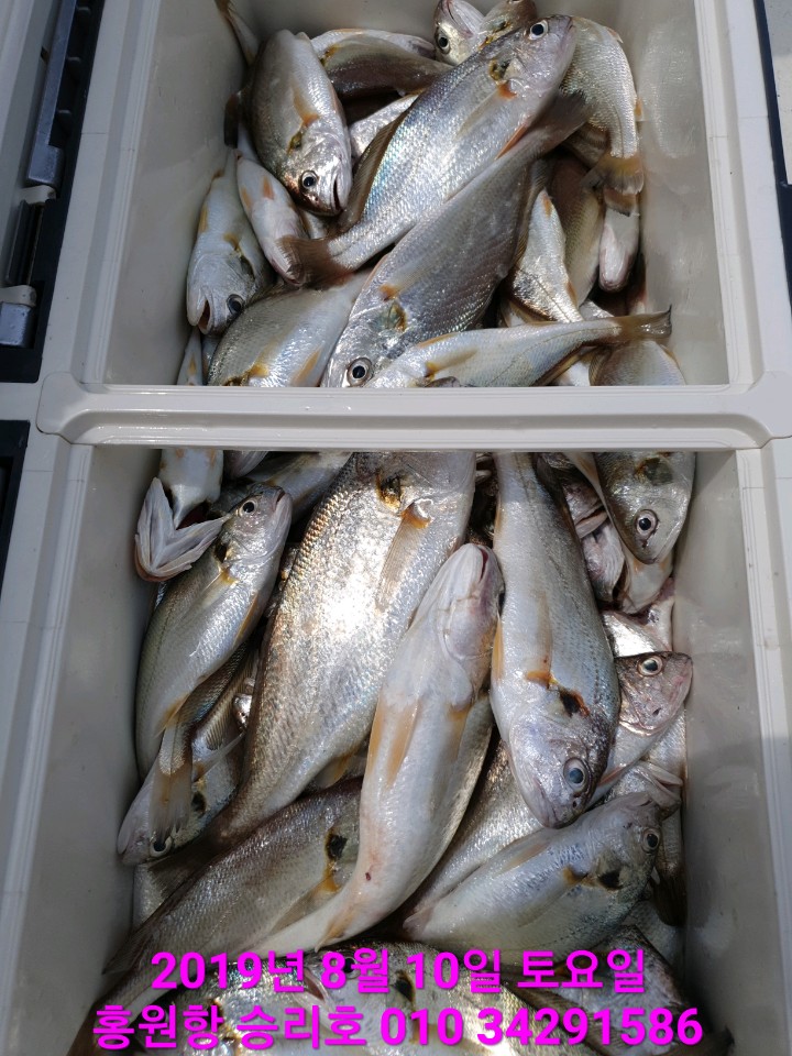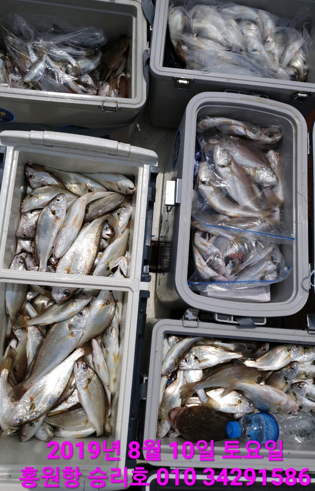 8월10일 승리호 *대장* 백조기로 *대장* 쿨러 채운 완~벽~한 조황입니다!!