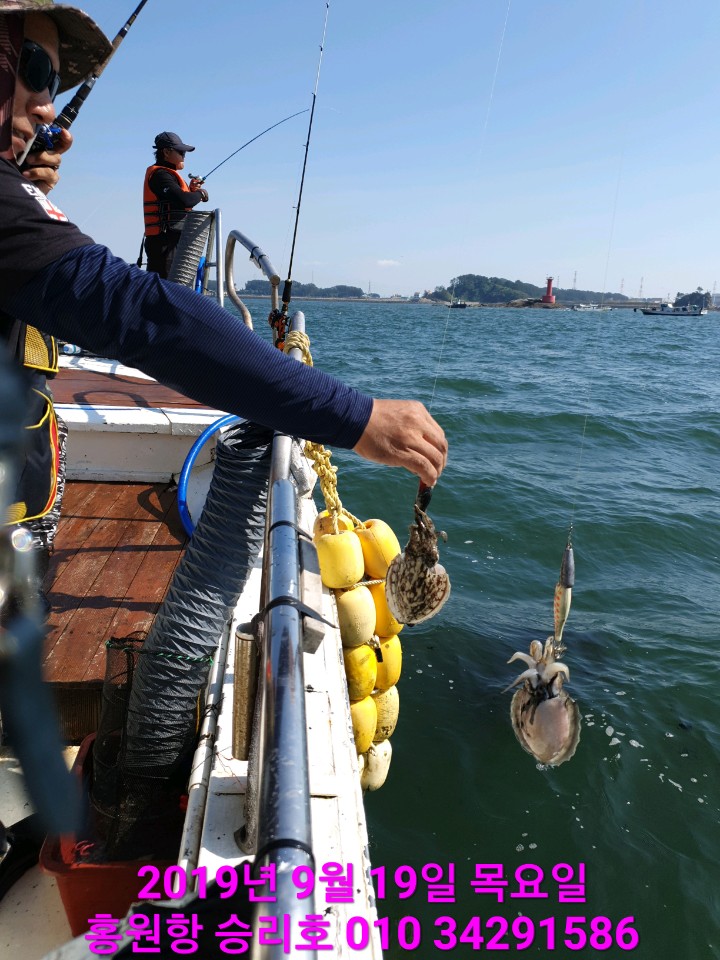 안녕하세요?홍원항 요포낚시입니다!!승리호 김선장님 오늘도 갑오징어&쭈꾸미 망태기는 엄~청~난 조황입니다!!우천속에서도 호조황에 수고하신 조사님들 안녕히 가시고다음 기회에 뵙겠습니다~~ *****기다리시던 2019년도 쭈꾸미&갑오징어 낚시가 9월1일 부터  출조가 시작되었습니다!!****         ~~예약을 미루셨던분들 서둘러 주십시요!! (지금 홍원항 쭈꾸미는 크기가 다커있습니다!!~~    ~~쭈꾸미낚시 예약은 쭈꾸미낚시의 *원조* 홍원항으로 오십시요!!~~ ***또한 해마다 쭈꾸미 치어를 방류 하는곳은 전국 낚시협회에서 서천군 낚시협회 뿐입니다!!***   ~~그러기에 조황도 타지역보다 ~만족한~ 조황으로 모십니다~~~~저희 요포선단은 쭈꾸미 선비만 받고 갑오징어 낚시도 병행 합니다~~   ~~~신분증 지참하지 않으신분은 승선을 하지못하니 꼭 지참하세요~~~   ( 신분증 지참하지않아서 승선 못하시면 환불도 되지않습니다!!)***요포낚시에서는 쭈꾸미 채비/참돔 타이러버/ 모든 채비를 초대박 세일가격으로 판매하고 있습니다!!******참돔 타이러버 출조예약 접수중******광어 다운샷 출조예약 접수중******우럭 * 광어 어초낚시 출조예약 접수중***                저희 요포선단은 항상 최선을다해 최고의 조황으로 보답 하겠습니다!!           **조황정보와 선상낚시 예약은 고객을 위해 최선을 다하는 홍원항 요포낚시로.....휴 대 폰 : 010-4437-5675   일반: 041-953-5675네비주소 : 충남 서천군 서면 도둔리  860-2번지홈페이지 : http://yopofishing.kr (네이버:요포낚시) *(수도권 지역 낚시전용 리무진 버스운행)*  ~~010-4572-1516 (요포낚시) 가신다고 문의하세요~~~~