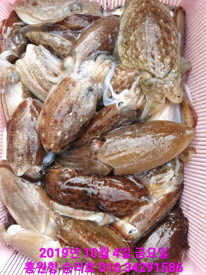 10월9일 홍원항 **요포선단** (승리호) 갑오징어&쭈꾸미 망태기는 오늘도 홈~런~성 조황입니다!!