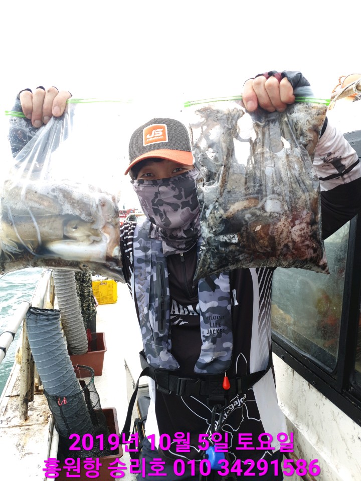 오늘은 승리호 김선장님 강~한~ 바람과 너울 속에서도 갑오징어&쭈꾸미 망태기는 대~풍~년 조황입니다!!
