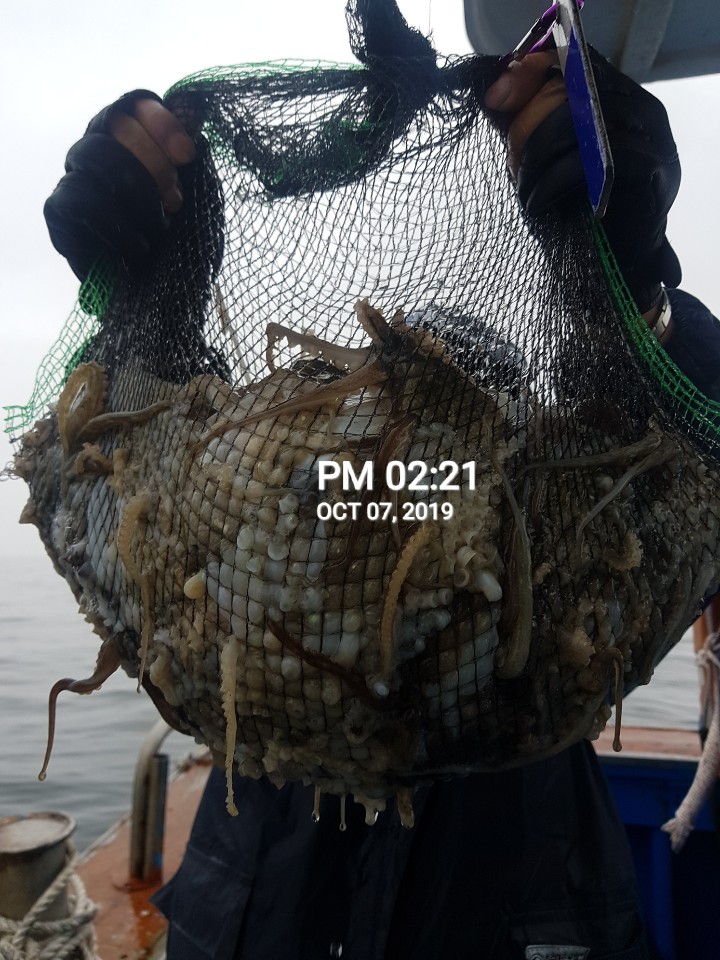 10월7일 홍원항 **요포선단** (승리호) 수중전에서도 갑&쭈 망태기는 오늘도 만~족~한 조황입니다!!