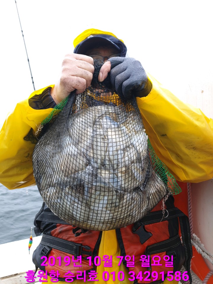 10월7일 홍원항 **요포선단** (승리호) 수중전에서도 갑&쭈 망태기는 오늘도 만~족~한 조황입니다!!