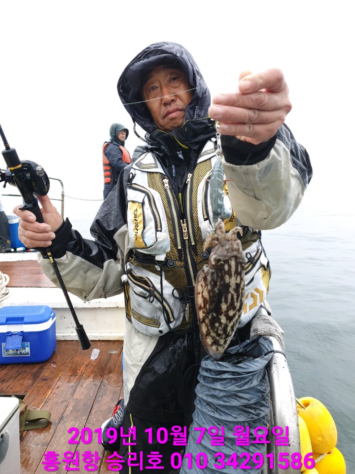 안녕하세요?홍원항 요포낚시입니다!!승리호 김선장님 거센 바람 속에서도 갑오징어&쭈꾸미 망태기는 오늘도 만~족~한 조황입니다!!심한 너울속에서도 조황에 수고하신 조사님들 안녕히 가시고 다음 기회에 뵙겠습니다~~ *****기다리시던 2019년도 쭈꾸미&갑오징어 낚시가 9월1일 부터  출조가 시작되었습니다!!****         ~~예약을 미루셨던분들 서둘러 주십시요!! (지금 홍원항 쭈꾸미는 크기가 다커있습니다!!~~    ~~쭈꾸미낚시 예약은 쭈꾸미낚시의 *원조* 홍원항으로 오십시요!!~~ ***또한 해마다 쭈꾸미 치어를 방류 하는곳은 전국 낚시협회에서 서천군 낚시협회 뿐입니다!!***   ~~그러기에 조황도 타지역보다 ~만족한~ 조황으로 모십니다~~~~저희 요포선단은 쭈꾸미 선비만 받고 갑오징어 낚시도 병행 합니다~~   ~~~신분증 지참하지 않으신분은 승선을 하지못하니 꼭 지참하세요~~~   ( 신분증 지참하지않아서 승선 못하시면 환불도 되지않습니다!!)***요포낚시에서는 쭈꾸미 채비/참돔 타이러버/ 모든 채비를 초대박 세일가격으로 판매하고 있습니다!!******참돔 타이러버 출조예약 접수중******광어 다운샷 출조예약 접수중******우럭 * 광어 어초낚시 출조예약 접수중***                저희 요포선단은 항상 최선을다해 최고의 조황으로 보답 하겠습니다!!           **조황정보와 선상낚시 예약은 고객을 위해 최선을 다하는 홍원항 요포낚시로.....휴 대 폰 : 010-4437-5675   일반: 041-953-5675네비주소 : 충남 서천군 서면 도둔리  860-2번지홈페이지 : http://yopofishing.kr (네이버:요포낚시) *(수도권 지역 낚시전용 리무진 버스운행)*  ~~010-4572-1516 (요포낚시) 가신다고 문의하세요~~~~