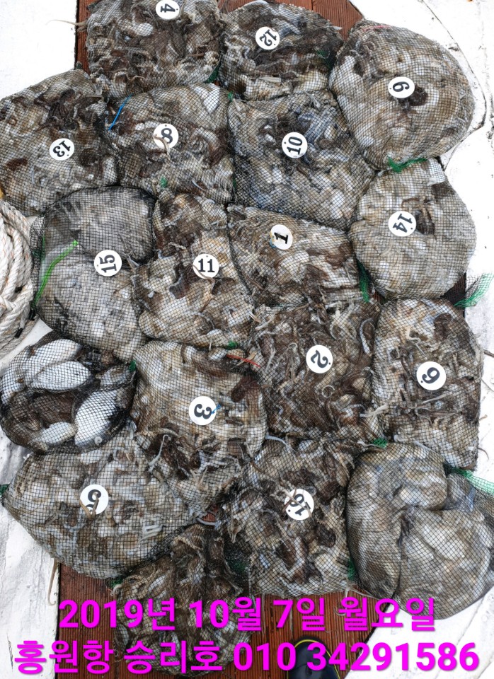 10월6일 홍원항 **요포선단** (승리호) 갑오징오& 쭈꾸미 망태는 오늘도 엄~청~난 조황입니다!!