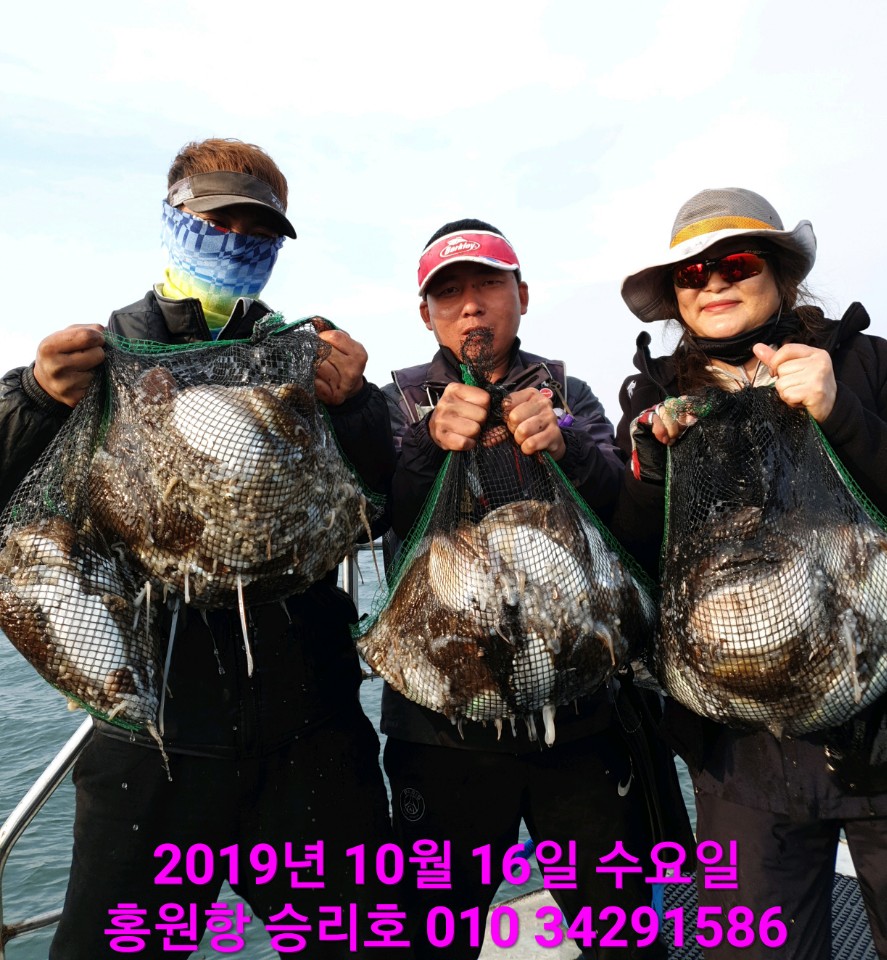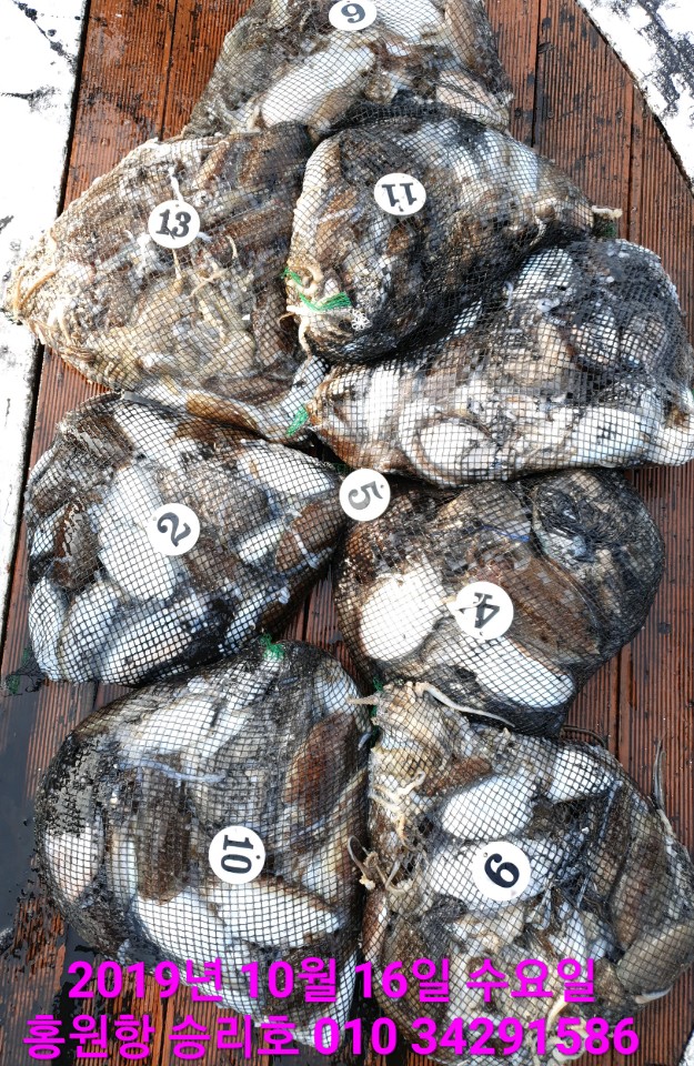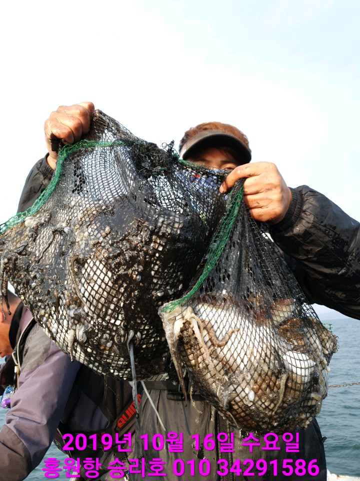 10월17일 홍원항 **요포선단** (승리호) 오늘도 갑&쭈 만~족~한~ 망태기조황입니다!!
