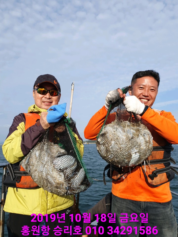 10월17일 홍원항 **요포선단** (승리호) 오늘도 갑&쭈 만~족~한~ 망태기조황입니다!!