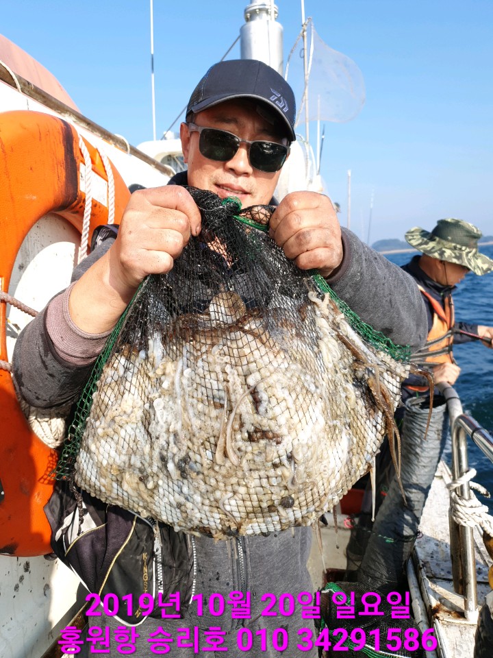 10월17일 홍원항 **요포선단** (승리호) 오늘도 갑&쭈 만~족~한~ 망태기조황입니다!!