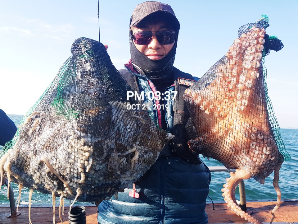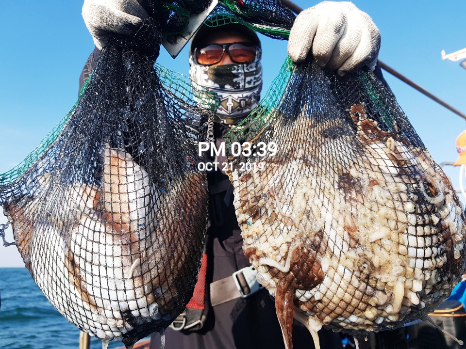 장진호 김선장님 오늘도 갑오징어&쭈꾸미 망태기는 오늘도 빵~빵~한 조황입니다!!