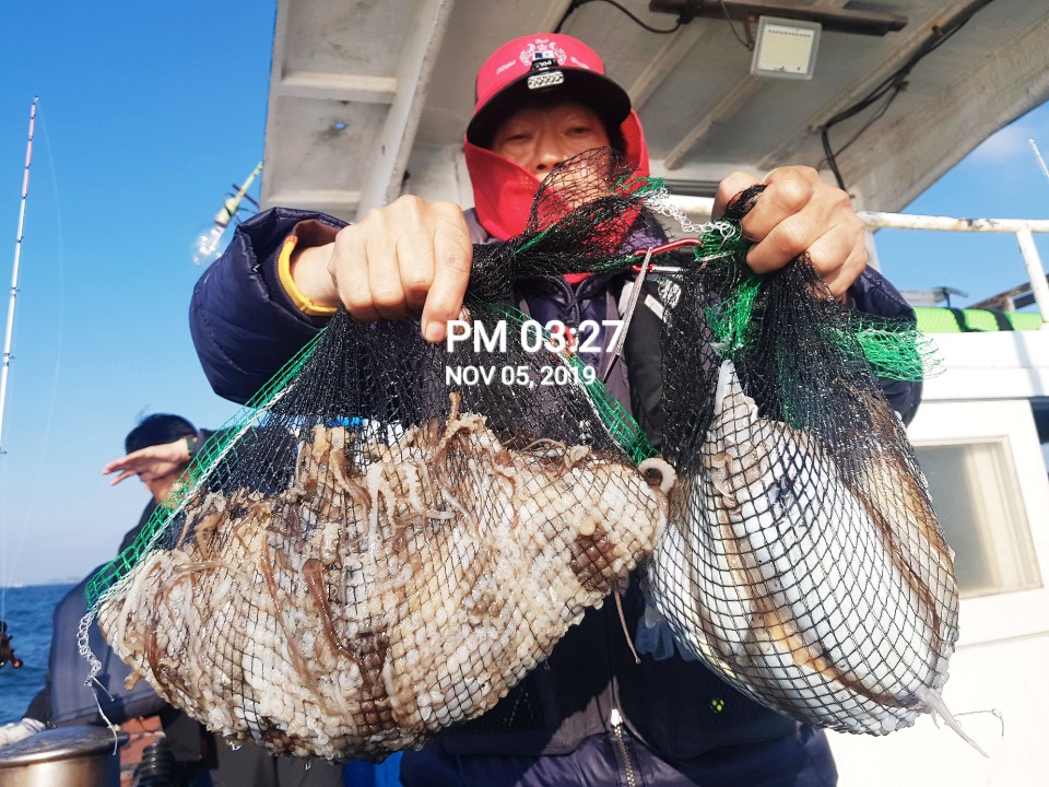 장진호 김선장님 오늘도 갑오징어&쭈꾸미 망태기는 전원 대~만~족 조황입니다!!