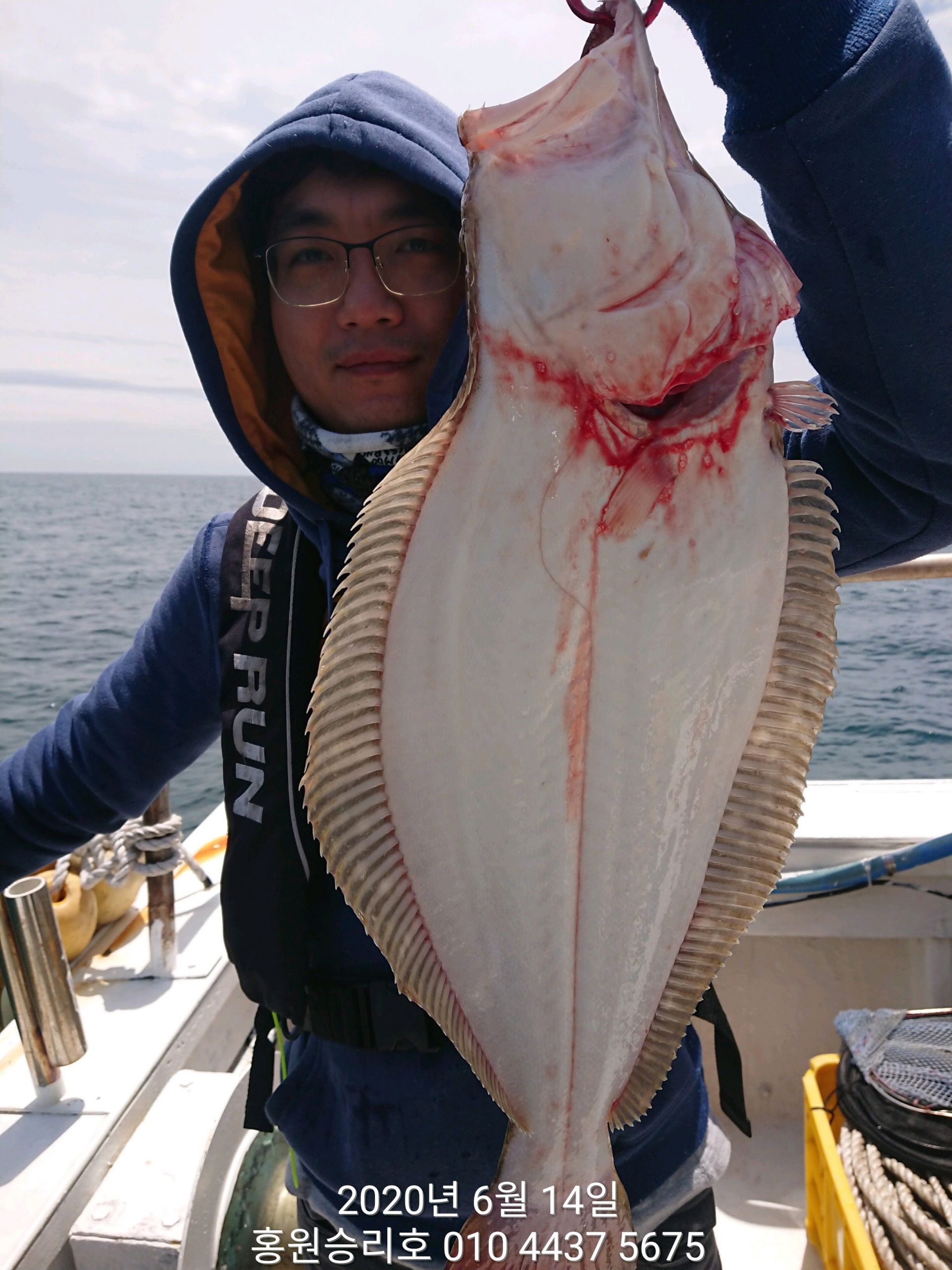 7월4일 홍원항 (승리호) ***대박*** 이벤트 생미끼 출조 8짜 대광어 포획 조황!!