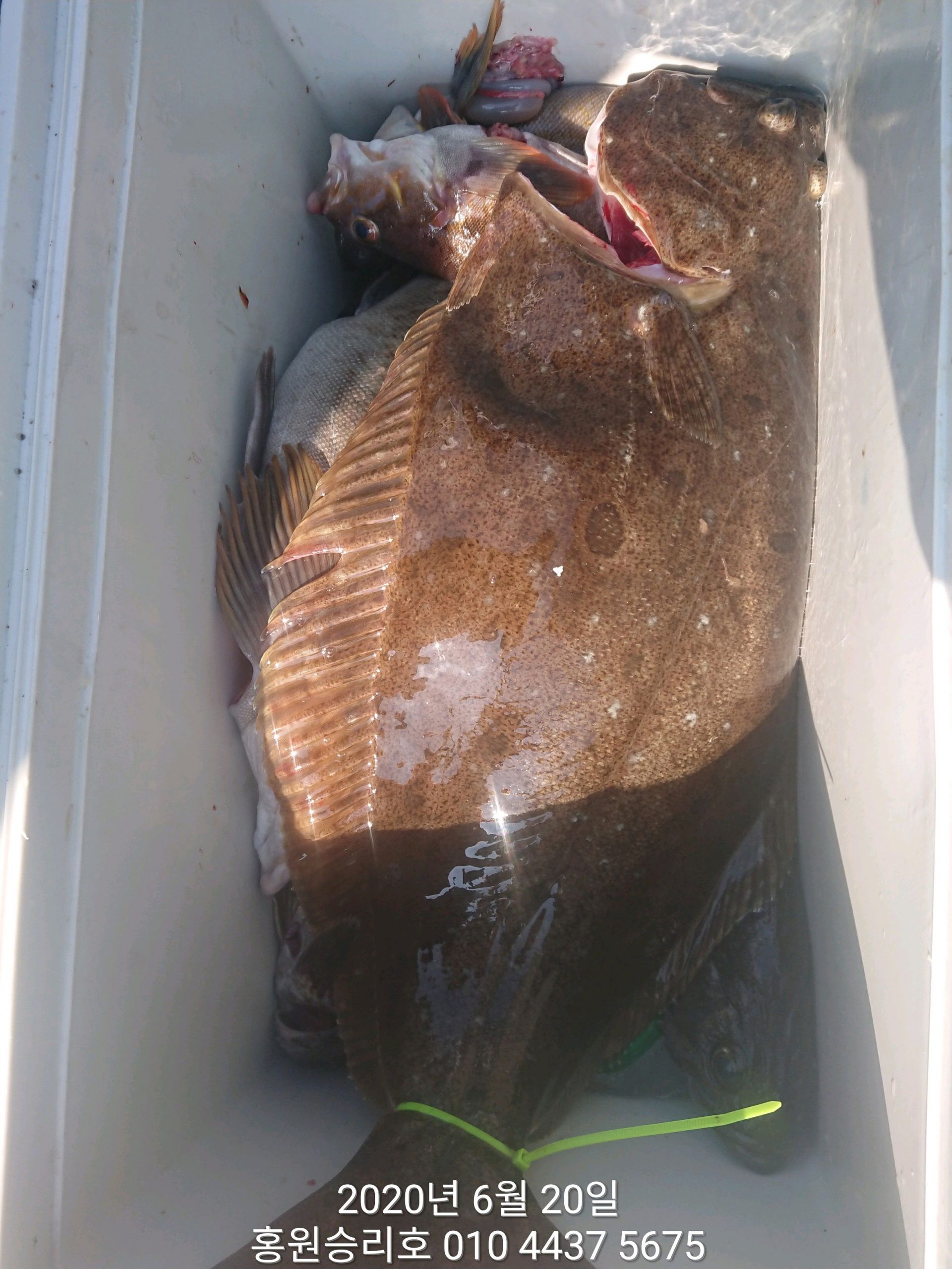 7월4일 홍원항 (승리호) ***대박*** 이벤트 생미끼 출조 8짜 대광어 포획 조황!!