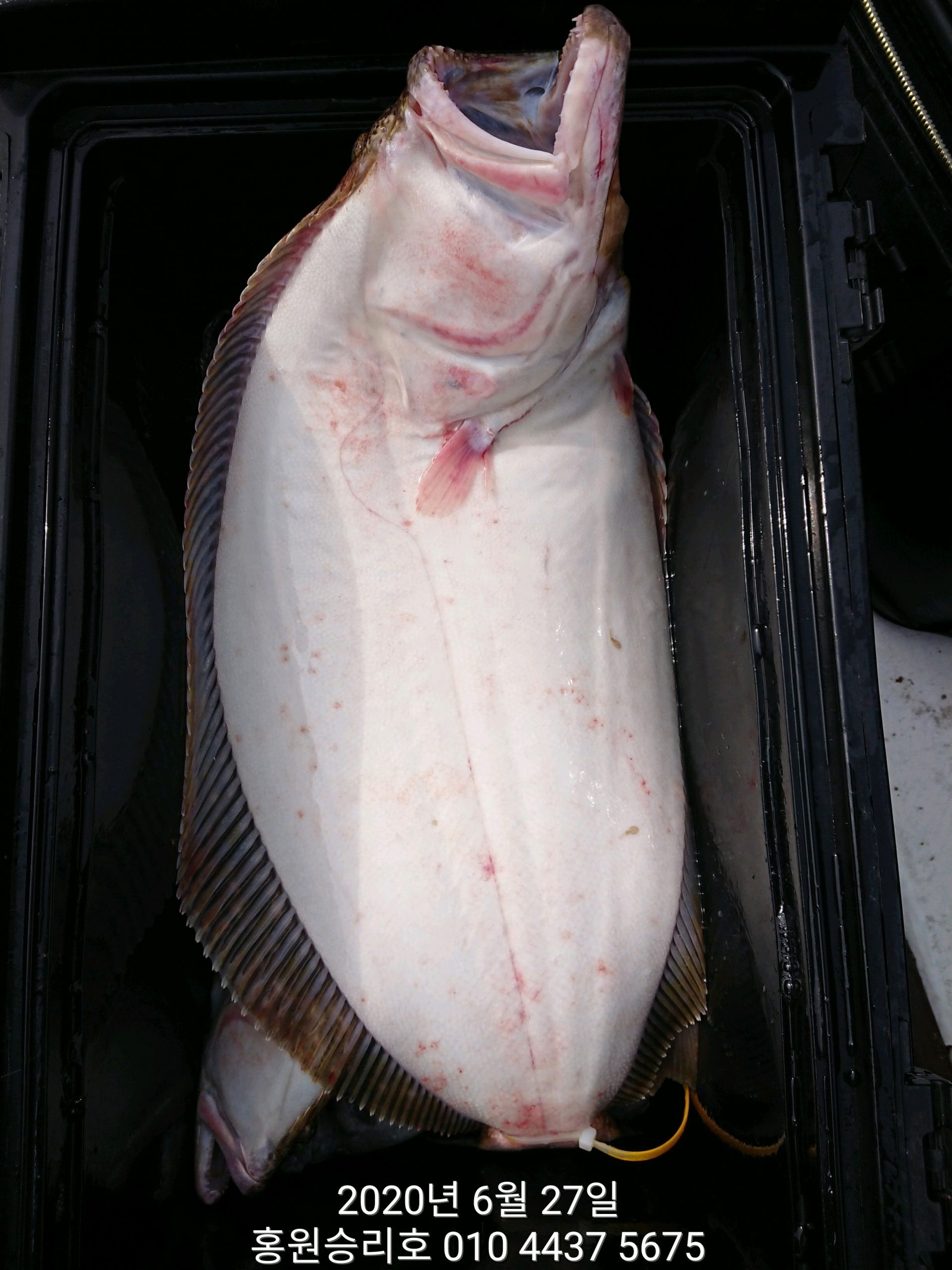 7월4일 홍원항 (승리호) ***대박*** 이벤트 생미끼 출조 8짜 대광어 포획 조황!!