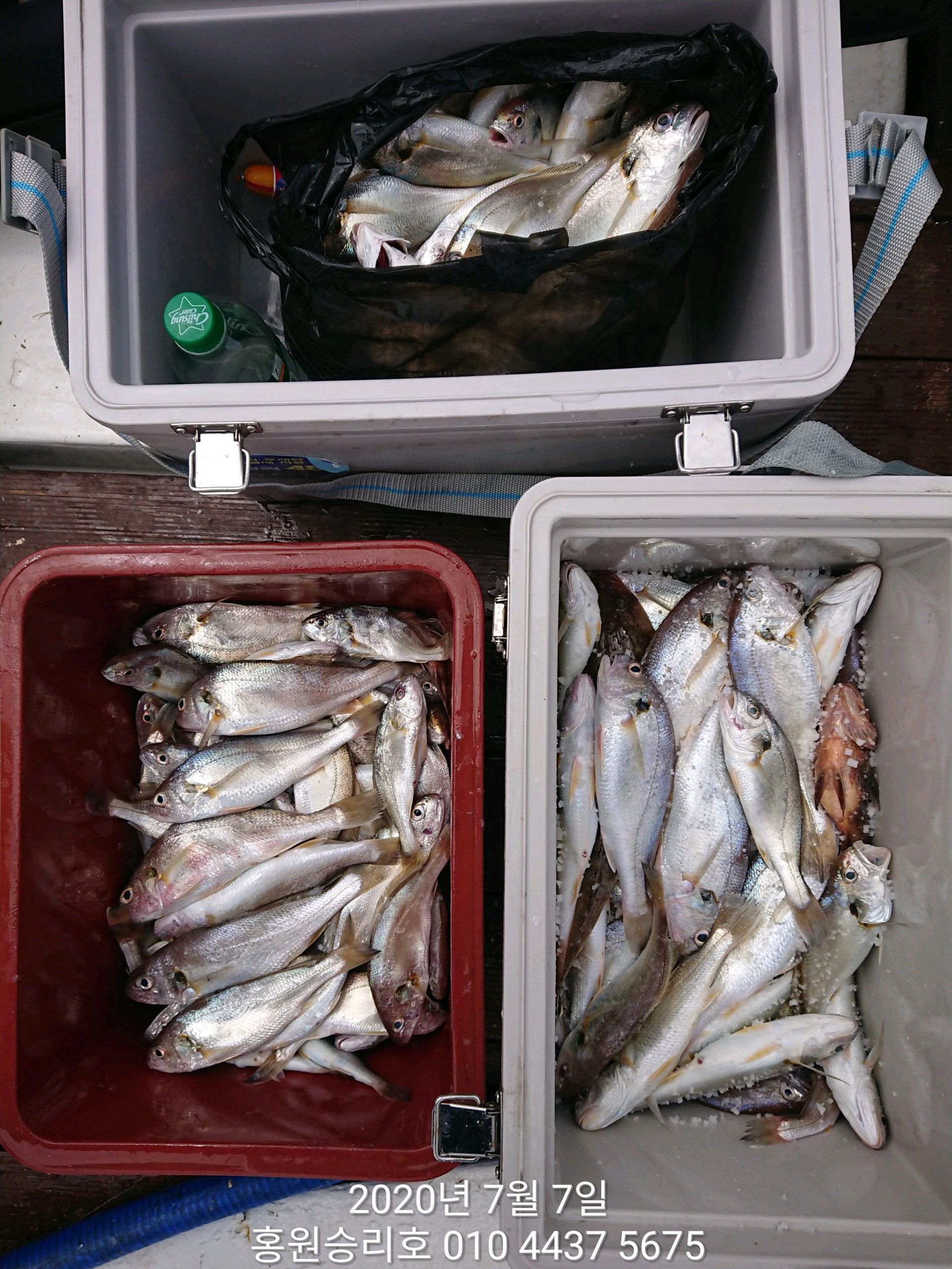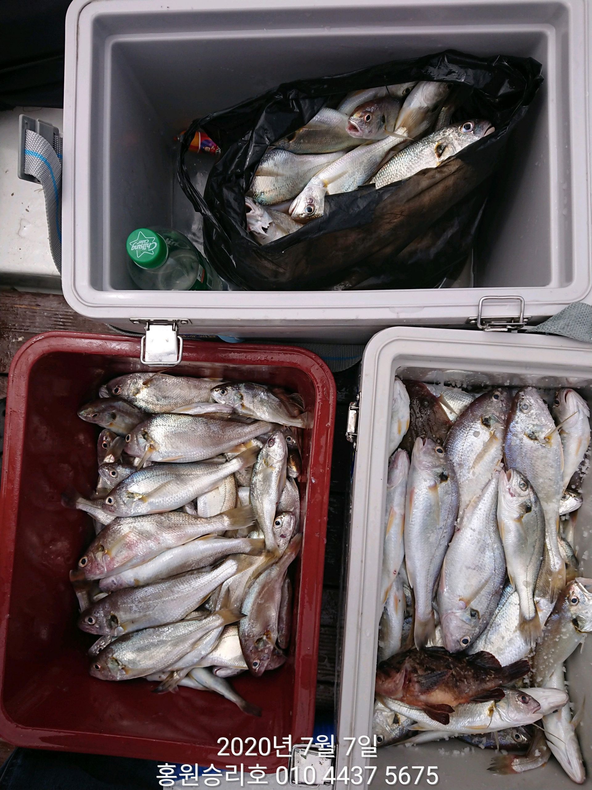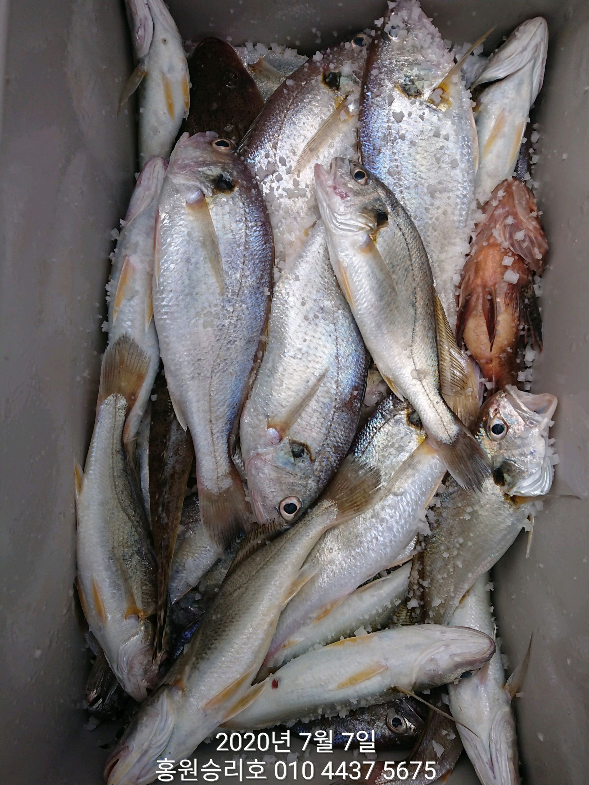 7월7일 홍원항 (승리호) ***대박*** 이벤트 출조 3분의 백조기 쿨러조황 입니다!!