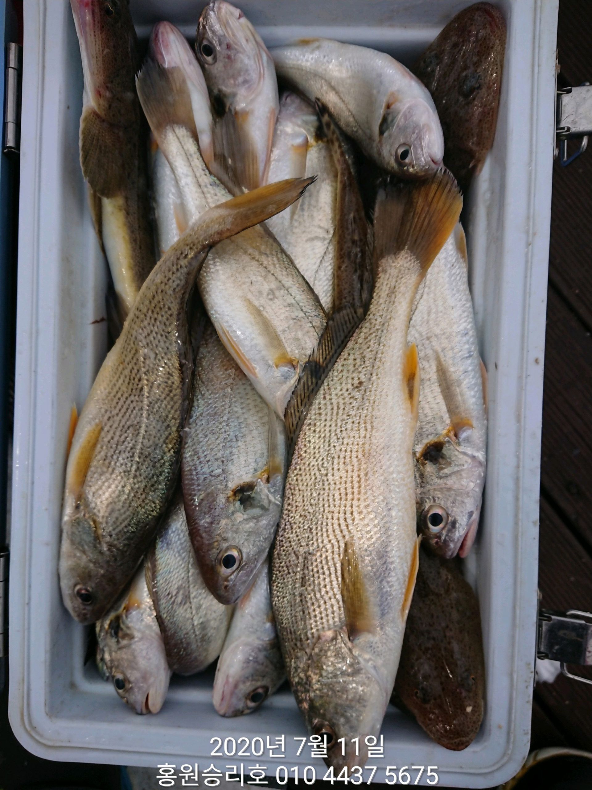 7월12일 홍원항 (승리호) ***왕대박*** 이벤트 ~황금빛~ 부서&백조기 만~족~한 쿨러 조황입니다!!