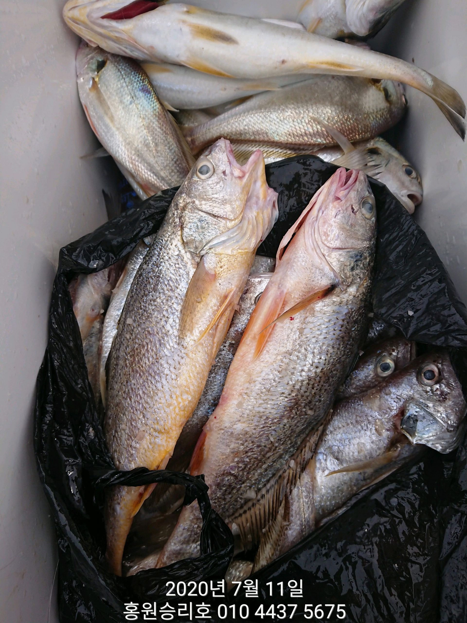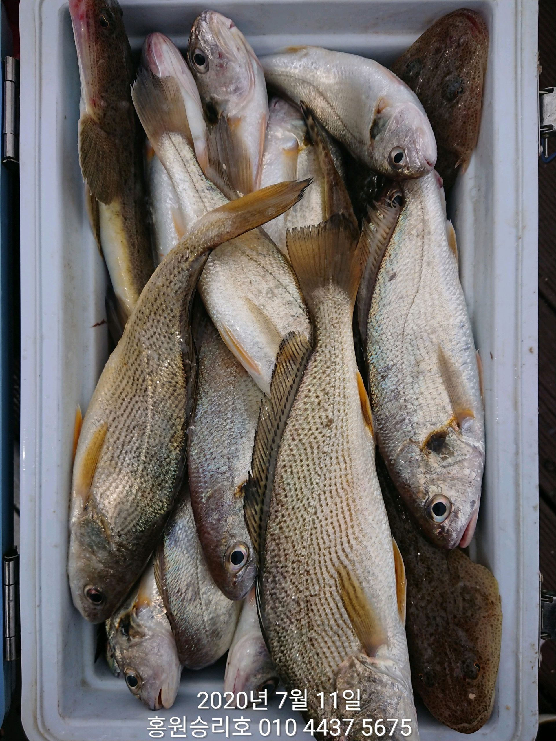 7월7일 홍원항 (승리호) ***대박*** 이벤트 출조 3분의 백조기 쿨러조황 입니다!!