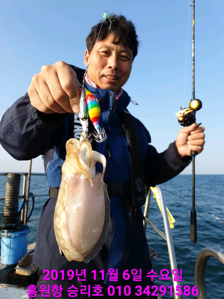 안녕하세요?홍원항 요포낚시입니다!!승리호 김선장님 갑오징어&쭈꾸미 빵~빵~한 망태기는 오늘도 대~만~족 조황입니다!!승리호 선상은 오늘도 여성 조사님이 장원이듯 합니다 ㅎㅎㅎㅎㅎ함께 호조황에 수고하신 조사님들 안녕히 가시고 다음 기회에 뵙겠습니다~~***긴급 모집*** 내일 (11/6일) 요포선단 출조 자리여유 있습니다!!  (황금 ㅂ물때에 동참 하실분은 연락 주세요!!) *****기다리시던 2019년도 쭈꾸미&갑오징어 낚시가 9월1일 부터  출조가 시작되었습니다!!****    ~~쭈꾸미낚시 예약은 쭈꾸미낚시의 *원조* 홍원항으로 오십시요!!~~ ***또한 해마다 쭈꾸미 치어를 방류 하는곳은 전국 낚시협회에서 서천군 낚시협회 뿐입니다!!***   ~~그러기에 조황도 타지역보다 ~만족한~ 조황으로 모십니다~~~~저희 요포선단은 쭈꾸미 선비만 받고 갑오징어 낚시도 병행 합니다~~   ~~~신분증 지참하지 않으신분은 승선을 하지못하니 꼭 지참하세요~~~   ( 신분증 지참하지않아서 승선 못하시면 환불도 되지않습니다!!)***요포낚시에서는 쭈꾸미 채비/참돔 타이러버/ 모든 채비를 초대박 세일가격으로 판매하고 있습니다!!******참돔 타이러버 출조예약 접수중******광어 다운샷 출조예약 접수중******우럭 * 광어 어초낚시 출조예약 접수중***                저희 요포선단은 항상 최선을다해 최고의 조황으로 보답 하겠습니다!!           **조황정보와 선상낚시 예약은 고객을 위해 최선을 다하는 홍원항 요포낚시로.....휴 대 폰 : 010-4437-5675   일반: 041-953-5675네비주소 : 충남 서천군 서면 도둔리  860-2번지홈페이지 : http://yopofishing.kr (네이버:요포낚시) *(수도권 지역 낚시전용 리무진 버스운행)*  ~~010-4572-1516 (요포낚시) 가신다고 문의하세요~~~~