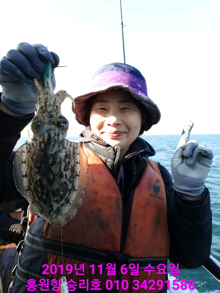 11월6일 홍원항 **요포선단** (승리호) 오늘도 갑오징어&쭈꾸미 망태기는 대~만~족 조황입니다!!