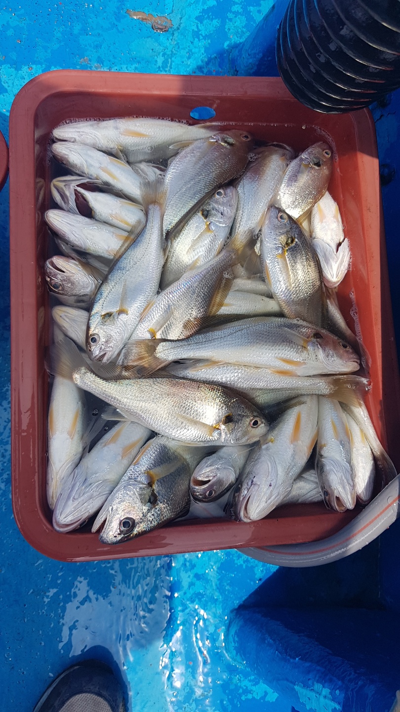 8월5일 홍원항 요포낚시 **제1선단** 장진호 백조기&부서 오전낚시 조황입니다!!