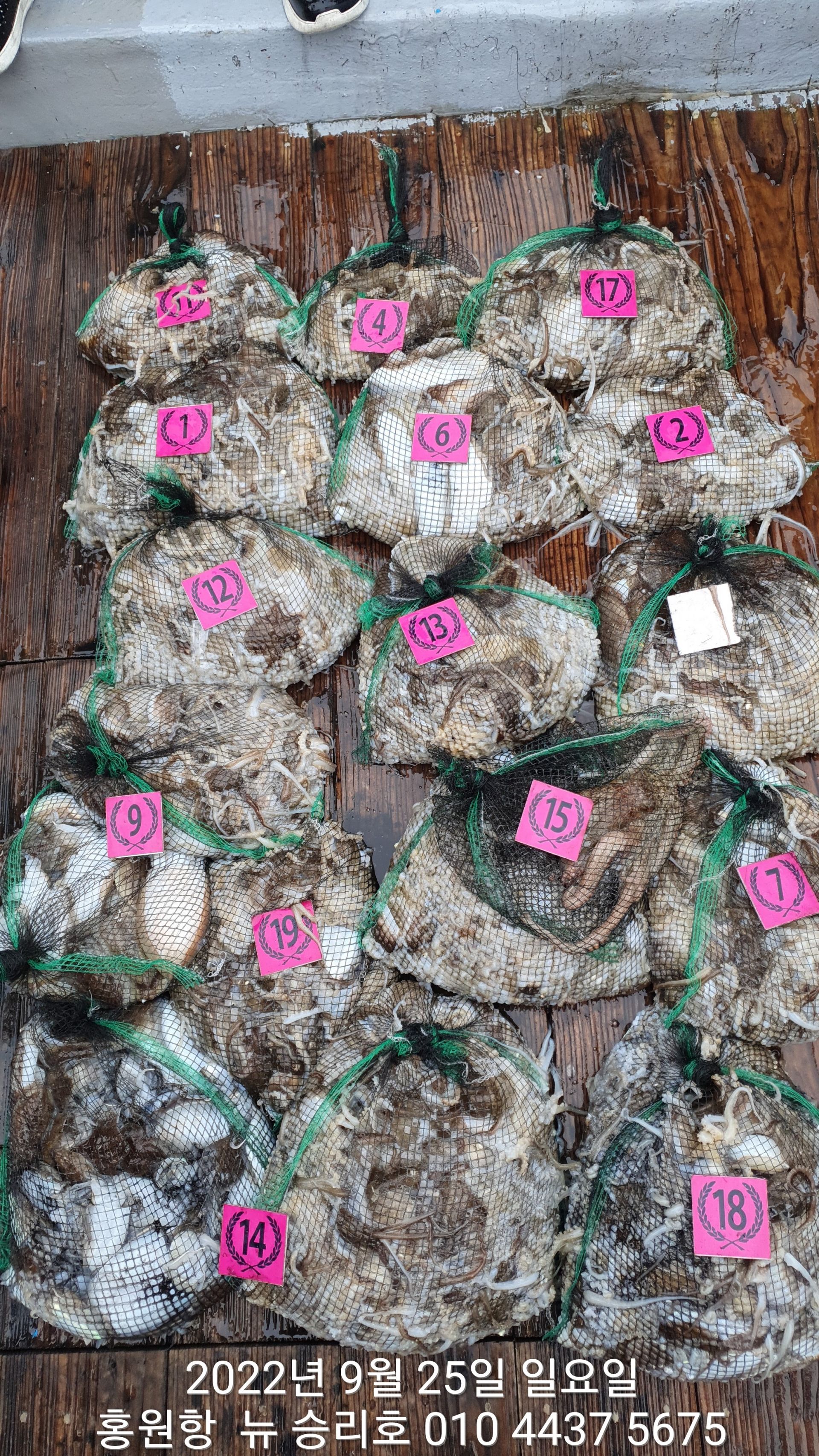 **쭈꾸미** (낚시의 원조 홍원항) ^위풍당당^ 뉴~ 승리호 9/22 왕~대~박~~망태기 조황입니다!!