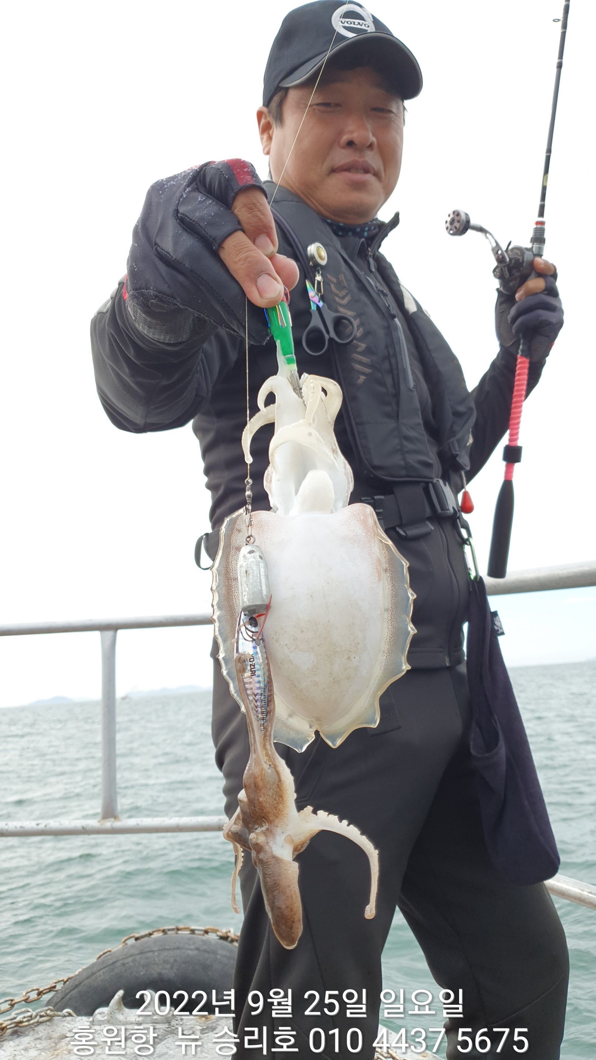 안녕하세요?홍원항 요포낚시입니다!!^^위풍당당^^ 뉴~ 승리호 김선장님 갑오징어&쭈꾸미 망태기는 터질듯 빵~빵~ 한 조황입니다!!이제는 갑오징어도 잘나와 주어서 쭈꾸미 보다는 갑오징어 조황으로  충분한 조황입니다~~이러한 조황이 홍원항 조황입니다!! 그러하니 조황확인 하시고  쭈꾸미 선비만 받고 갑오징어 낚시를 병행출조 하는 요포낚시로 동참해 주세요!!오늘도 대~박~~ 조황에 수고하신 조사님들 안녕히 가세요!!