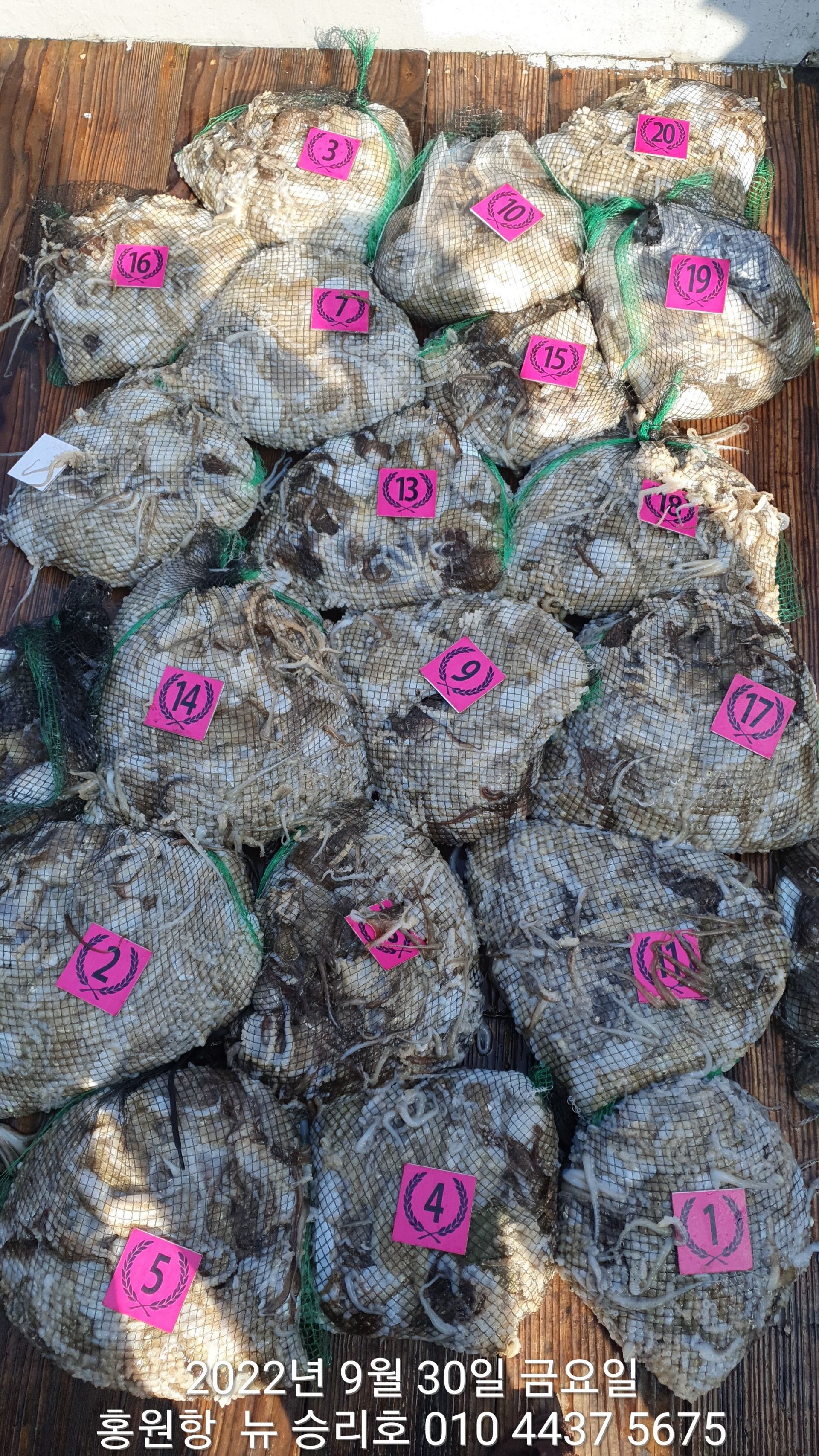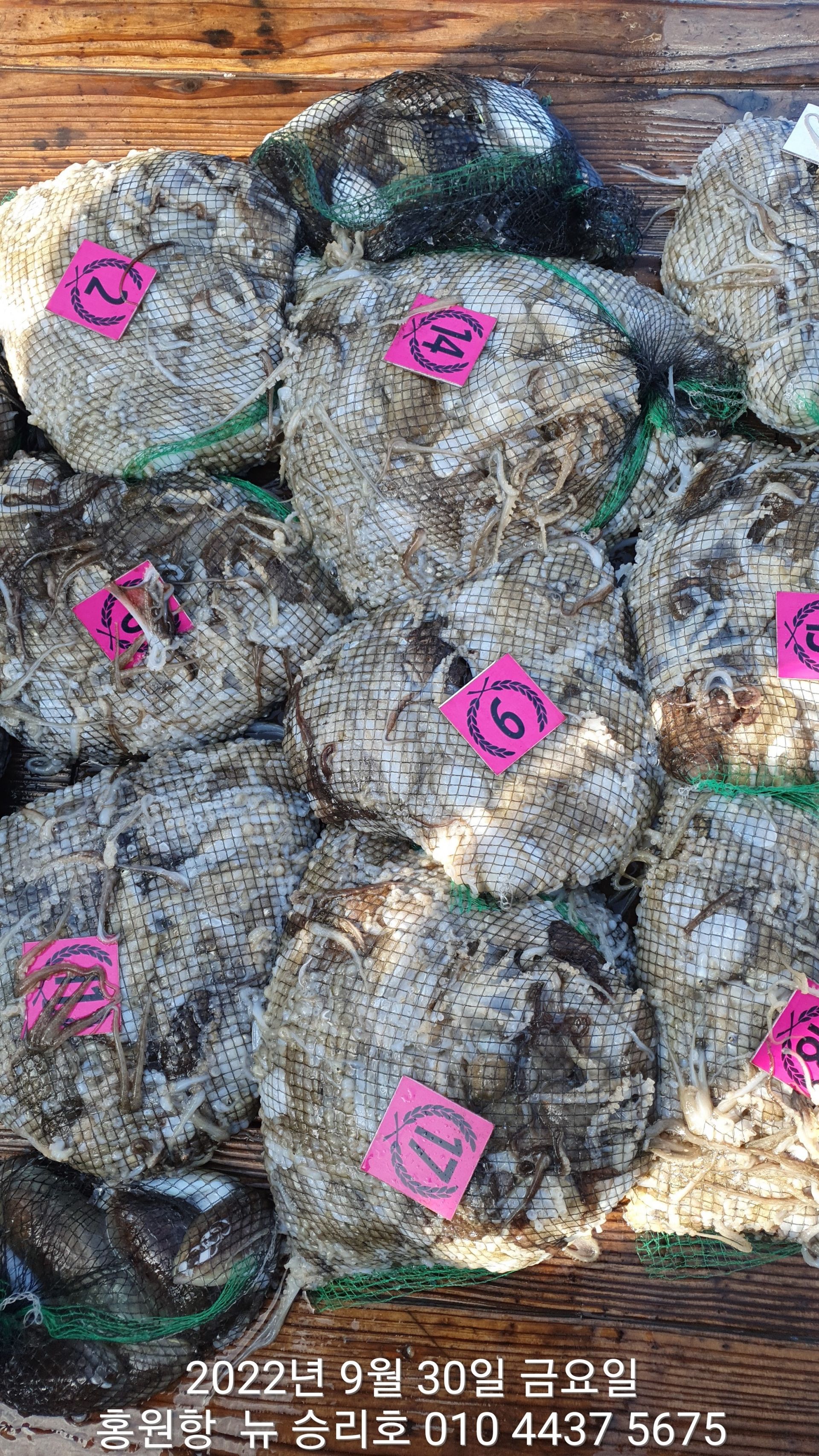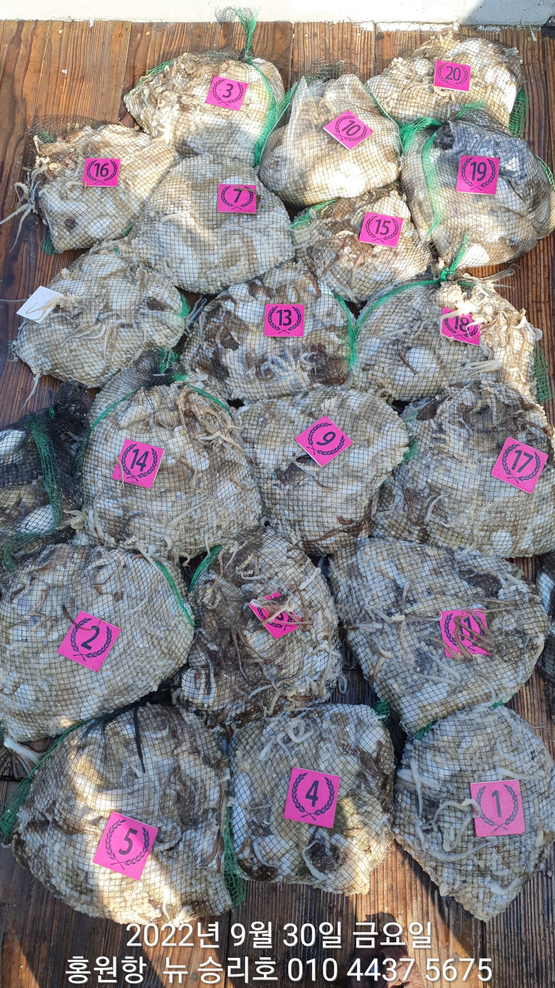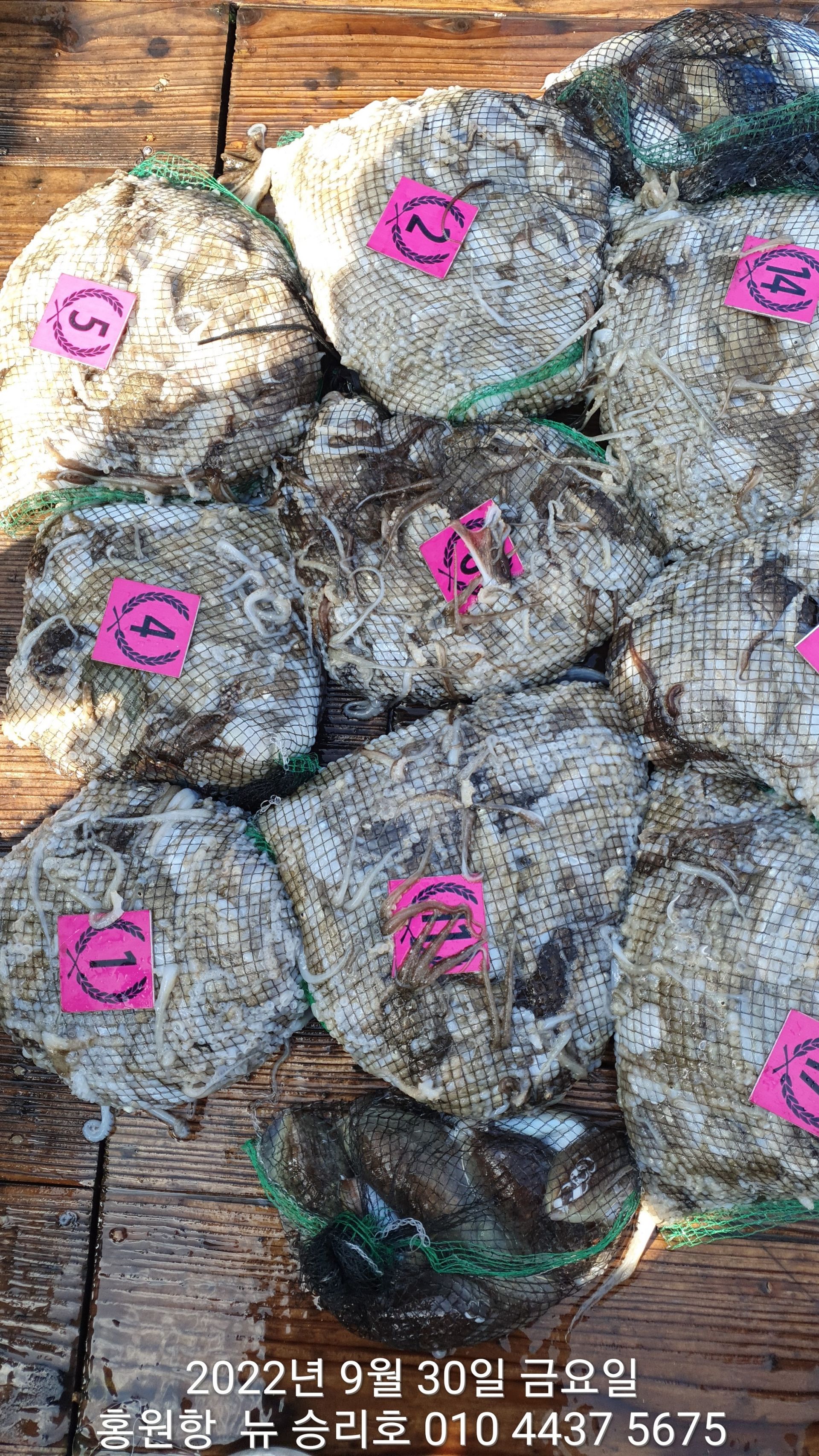 **쭈꾸미** (낚시의 원조 홍원항) 요포낚시 ~제1선단~ 장진호 9/29 쭈꾸미 망태기 조황입니다!!