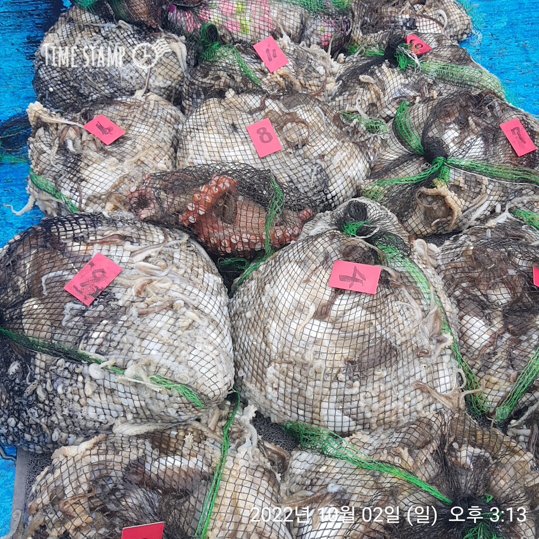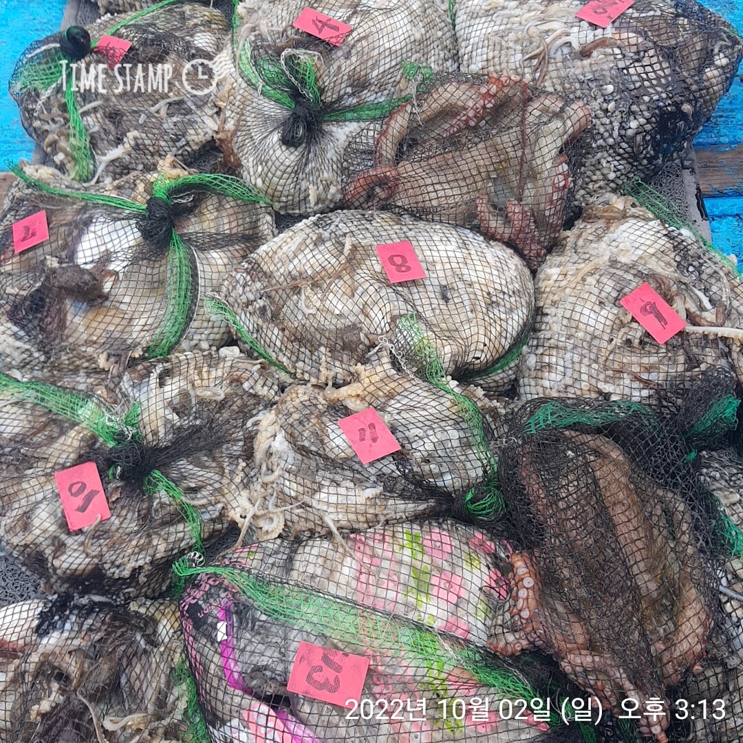**쭈꾸미** (낚시의 원조 홍원항) 요포낚시 ~제1선단~ 장진호 9/29 쭈꾸미 망태기 조황입니다!!