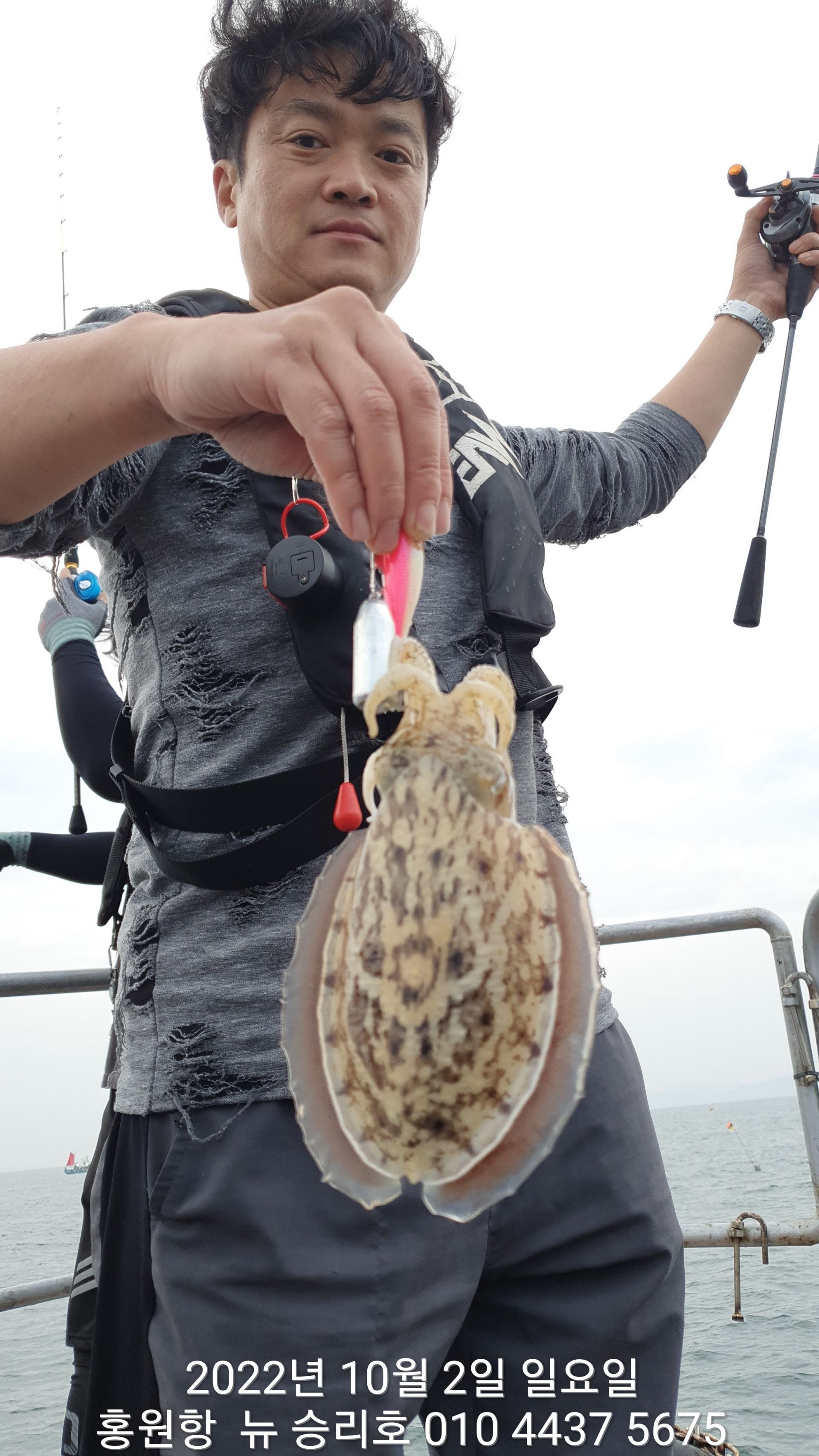 안녕하세요?홍원항 요포낚시입니다!!^^위풍당당^^ 뉴~ 승리호 김선장님 갑오징어&쭈꾸미 망태기는 터질듯 빵~빵~ 한 조황입니다!!이제는 갑오징어도 잘나와 주어서 쭈꾸미 보다는 갑오징어 조황으로  충분한 조황입니다~~이러한 조황이 홍원항 조황입니다!! 그러하니 조황확인 하시고  쭈꾸미 선비만 받고 갑오징어 낚시를 병행출조 하는 요포낚시로 동참해 주세요!!오늘도 대~박~~ 조황에 수고하신 조사님들 안녕히 가세요!!