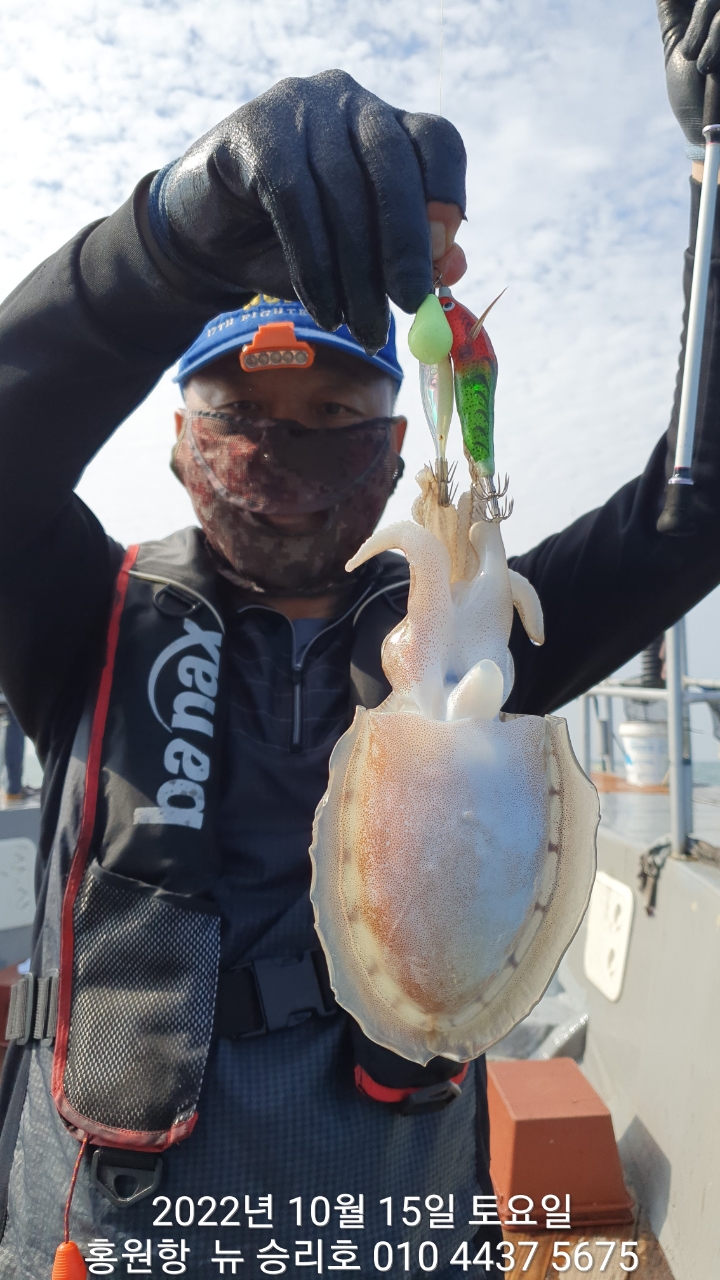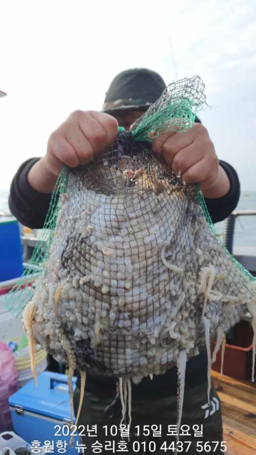안녕하세요?홍원항 요포낚시입니다!!^^위풍당당^^ 뉴~ 승리호 김선장님 갑오징어&쭈꾸미 망태기는 터질듯 빵~빵~ 한 조황입니다!!이제는 갑오징어도 잘나와 주어서 쭈꾸미 보다는 갑오징어 조황으로 충분한 조황입니다~~이러한 조황이 홍원항 조황입니다!! 그러하니 조황확인 하시고 쭈꾸미 선비만 받고 갑오징어 낚시를 병행출조 하는 요포낚시로 동참해 주세요!!오늘도 대~박~~ 조황에 수고하신 조사님들 안녕히 가세요!!~~~~~다음주중 (10/24일~10/28일) 약한 사릿물 이라서 갑오징어 황금물때 사냥에 동참 하실분은 연락 주세요!!~~~~