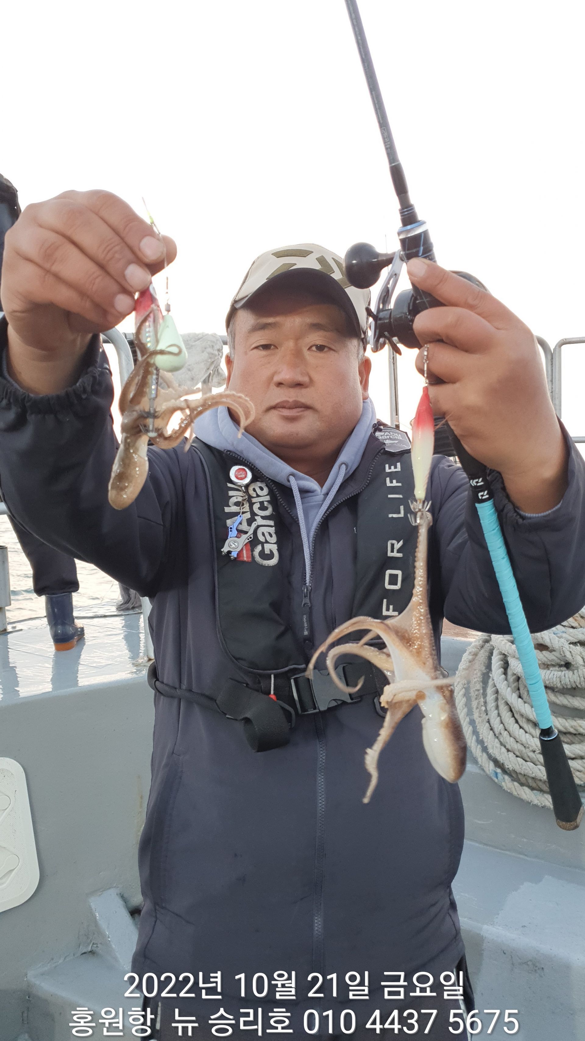 안녕하세요?홍원항 요포낚시입니다!!^^위풍당당^^ 뉴~ 승리호 김선장님 갑오징어&쭈꾸미 망태기는 터질듯 빵~빵~ 한 조황입니다!!이제는 갑오징어도 잘나와 주어서 쭈꾸미 보다는 갑오징어 조황으로  충분한 조황입니다~~이러한 조황이 홍원항 조황입니다!! 그러하니 조황확인 하시고  쭈꾸미 선비만 받고 갑오징어 낚시를 병행출조 하는 요포낚시로 동참해 주세요!!오늘도 대~박~~ 조황에 수고하신 조사님들 안녕히 가세요!!~~~~~다음주중 (10/24일~10/28일) 약한 사릿물 이라서 갑오징어 황금물때 사냥에 동참 하실분은 연락 주세요!!~~~~