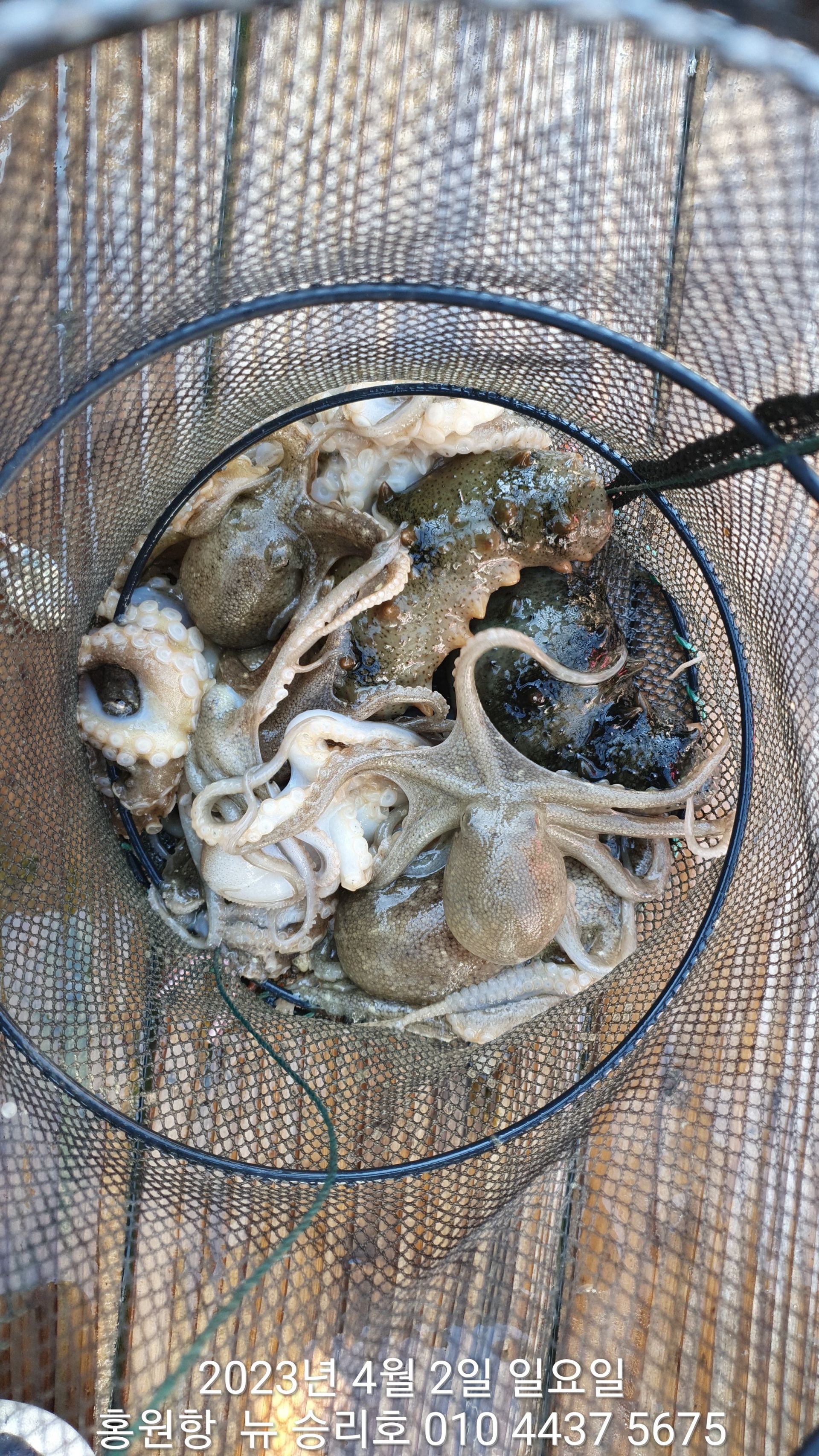 안녕하세요?홍원항 요포낚시입니다!!오늘은 ^^위풍당당^^ 뉴승리호 봄 왕쭈꾸미 첫출조 다녀왔습니다!!출조하신 조사님들 전원이 안주거리 장만하시고 기분좋은 봄 나들이 하고 가신다고 말씀들 하시네요!!오늘은 첫출조 축하라도 하듯이 무임 승선한 낙지와 해삼이 선상의 즐거움을 만끽하게 해주었군요^^^^^오늘도 첫출조에 수고하신 조사님들 안녕히 가시고 다음 기회에 뵙겠습니다!!~~3일( 월요일) 황금 물때 자리여유 있으니 동참 하실분은 연락 주세요!!~~23년도 봄(알) 쭈꾸미 탐사출조를  4월1일 부터시작합니다!!1) 탐사 출조비 5만원2) 중식 : 커피: 캔음료: 얼음생수:기타음료: 컵라면: 써비스입니다3) 탐사 출조하시는 분께 가을