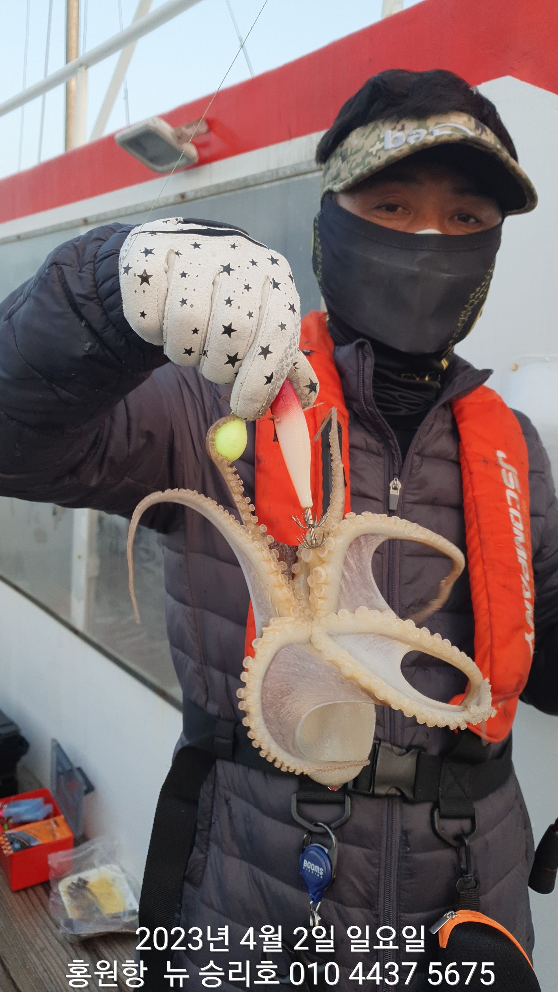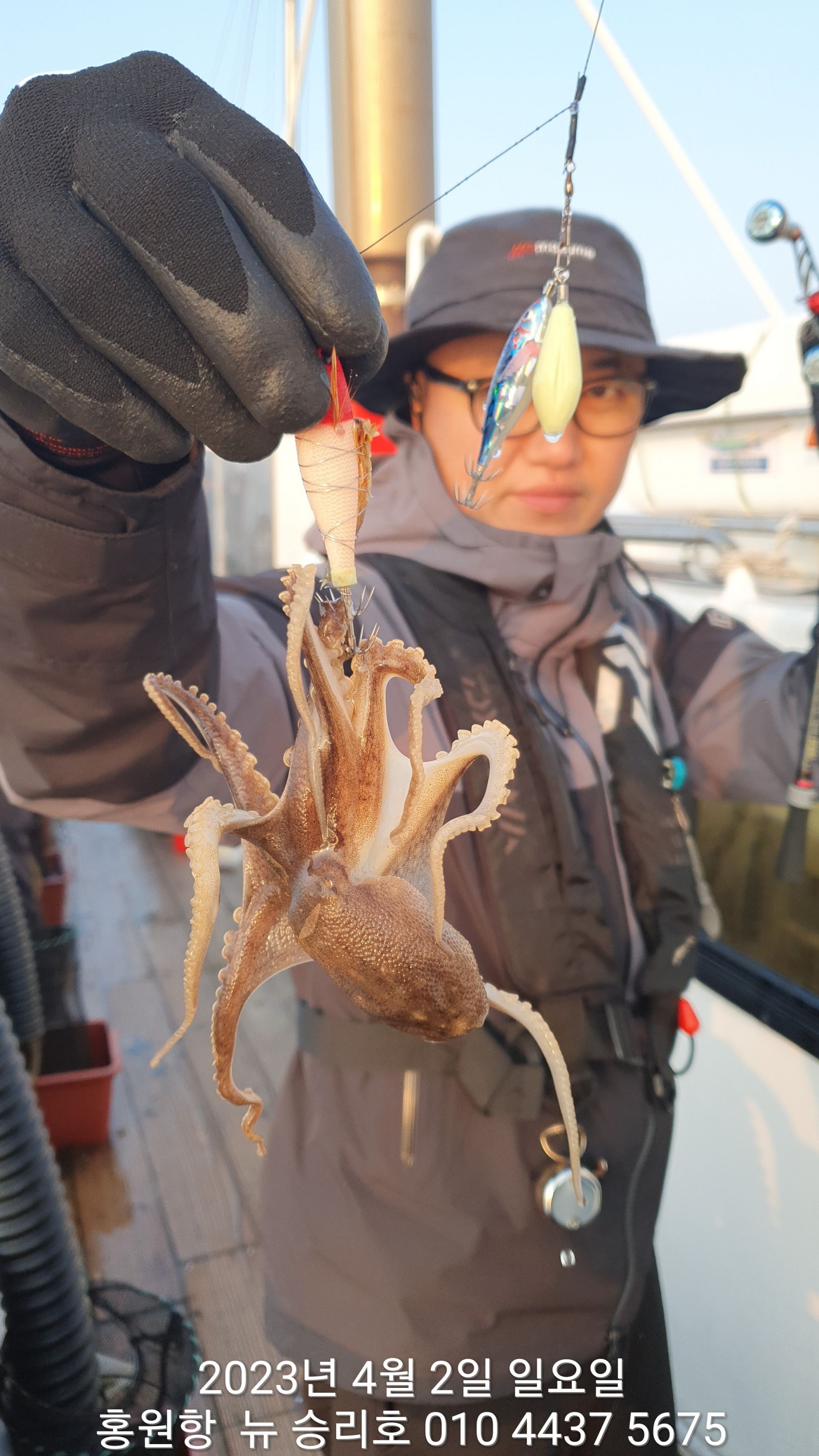 안녕하세요?홍원항 요포낚시입니다!!오늘도 ^^위풍당당^^ 뉴~승리호 조사님들 모두 만~족~은 아니지만 안주거리로는 충분한 조황입니다!!오늘도 왕 낙지와 신발짝 해삼이 선상의 환호성을 자아냈군요^^^^^함께 수고하신 조사님들 안녕히 가시고 다음 기회에 뵙겠습니다!!~~~긴급~~~ 내일/3일(월요일) 잔여석 있으니 동참 하실분은 연락 주세요!!23년도 봄(알) 쭈꾸미 탐사출조를  4월1일 부터시작합니다!!1) 탐사 출조비 5만원2) 중식 : 커피: 캔음료: 얼음생수:기타음료: 컵라면: 써비스입니다3) 탐사 출조하시는 분께 가을