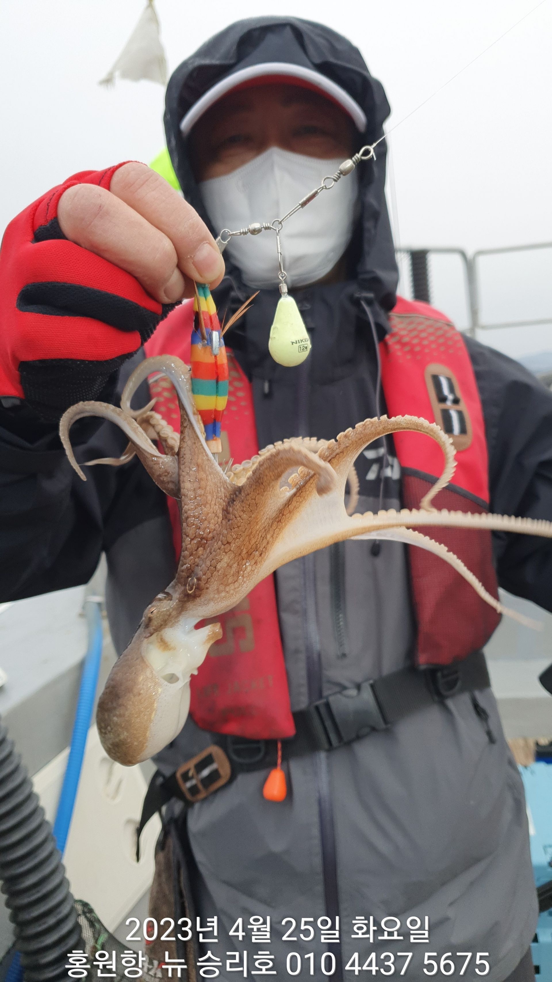 안녕하세요?홍원항 요포낚시입니다!!오늘도 ^^위풍당당^^ 뉴~승리호 조사님들 모두 만~족~은 아니지만 안주거리로는 충분한 조황입니다!!오늘도 왕 낙지와 신발짝 해삼이 선상의 환호성을 자아냈군요^^^^^함께 수고하신 조사님들 안녕히 가시고 다음 기회에 뵙겠습니다!!~~~긴급~~~ 내일/3일(월요일) 잔여석 있으니 동참 하실분은 연락 주세요!!23년도 봄(알) 쭈꾸미 탐사출조를  4월1일 부터시작합니다!!1) 탐사 출조비 5만원2) 중식 : 커피: 캔음료: 얼음생수:기타음료: 컵라면: 써비스입니다3) 탐사 출조하시는 분께 가을