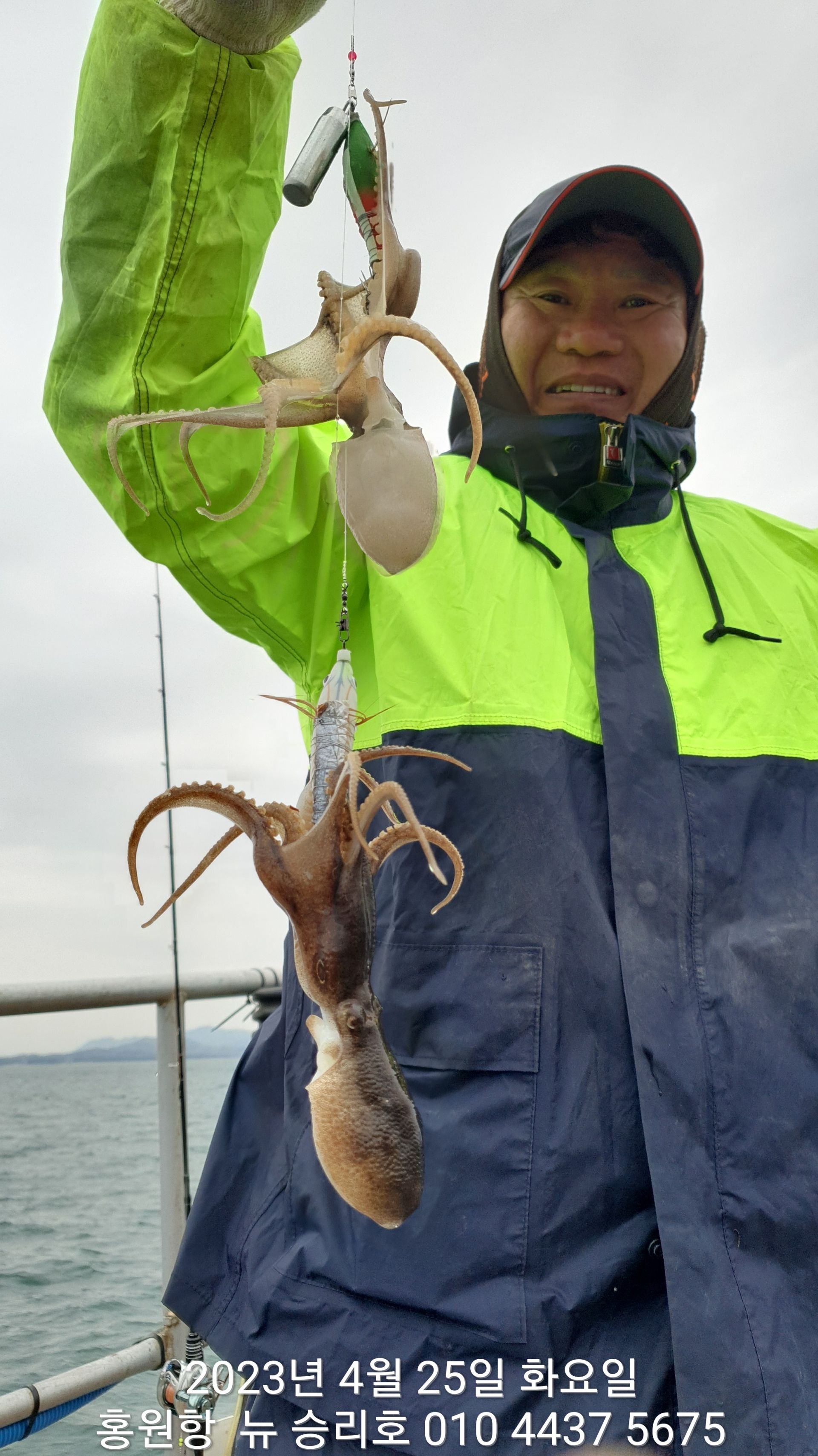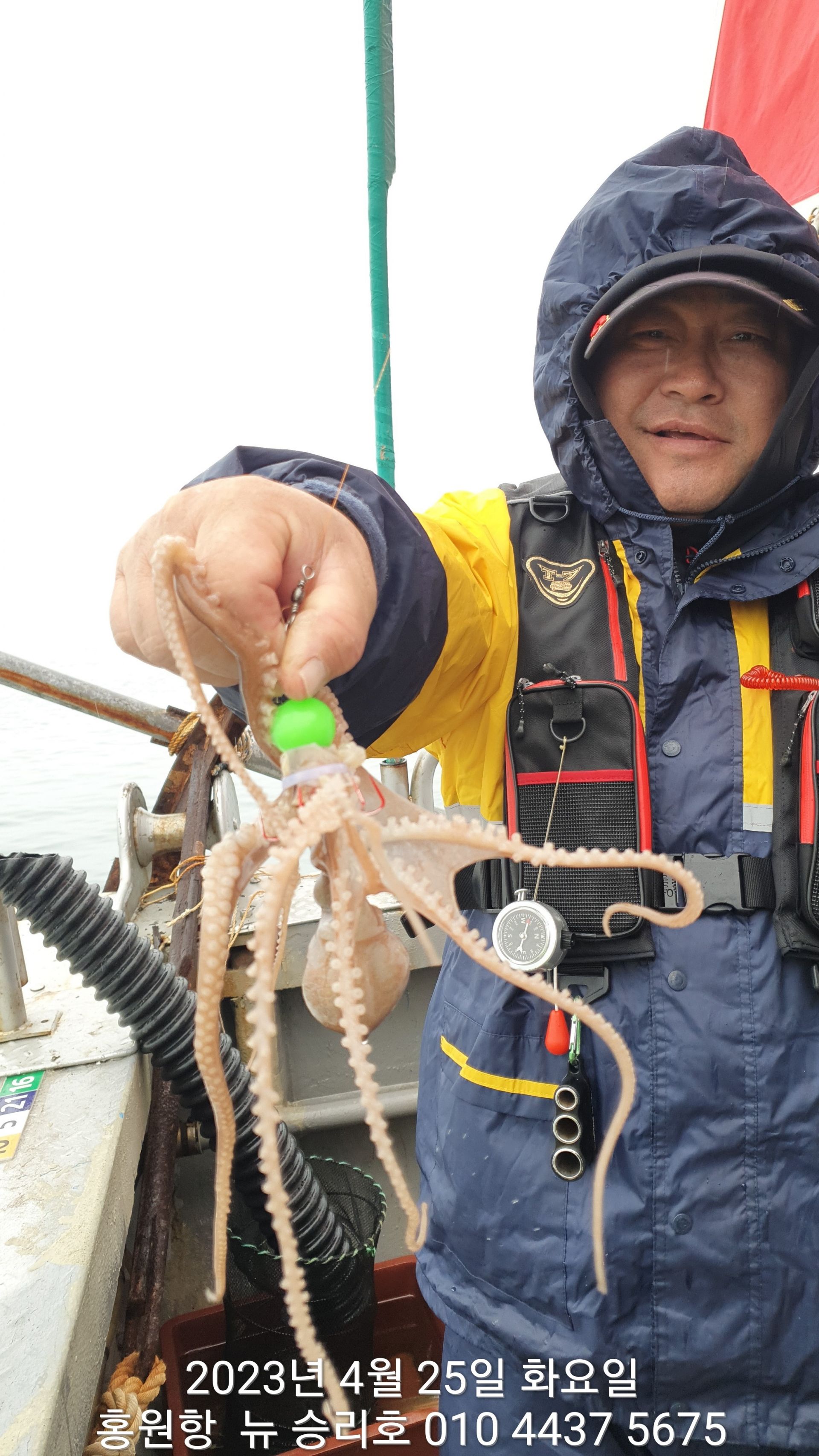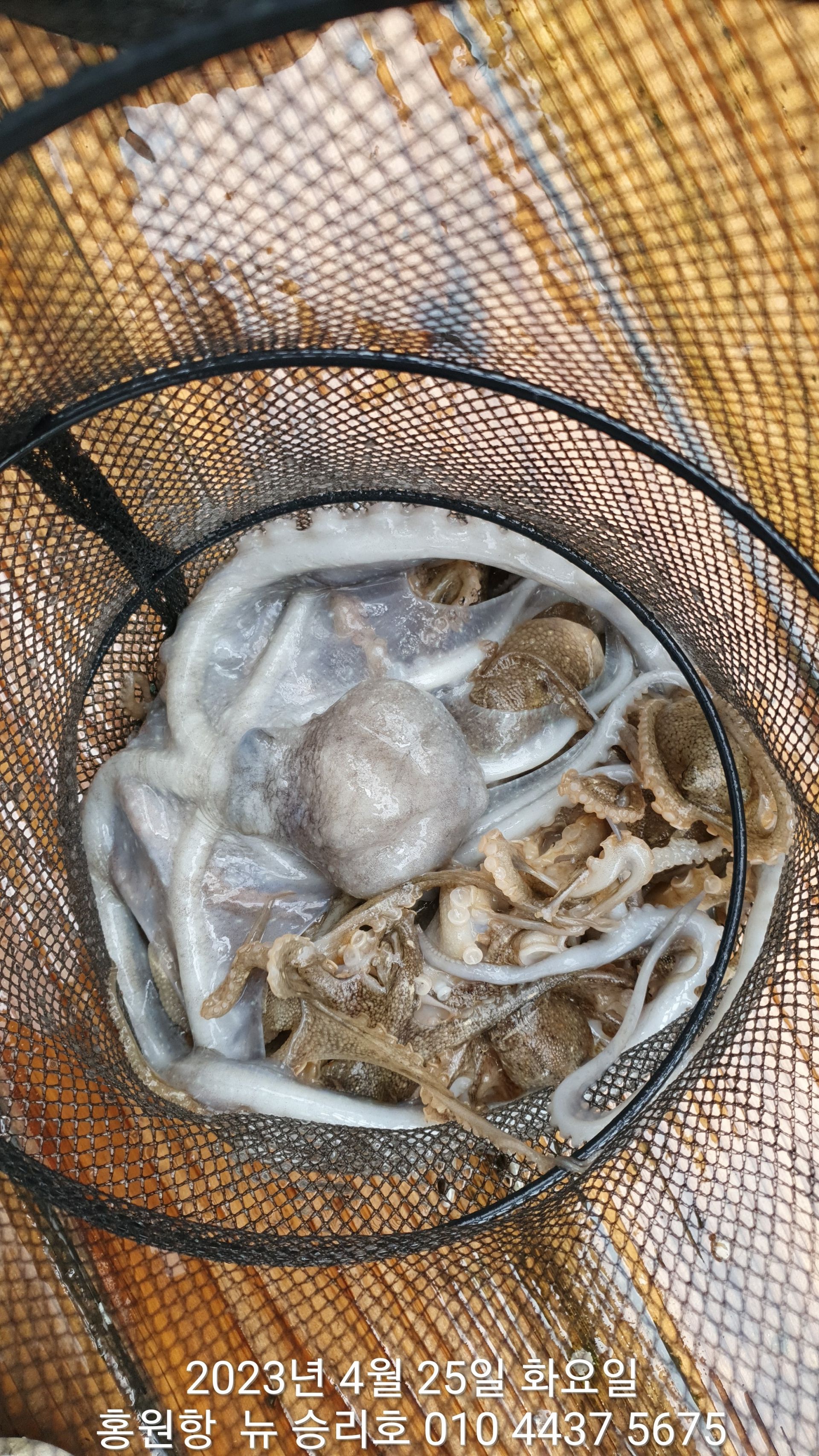 안녕하세요?홍원항 요포낚시입니다!!오늘은 이른 새벽부터 내리는 이슬비로 많은 걱정을 하며 출조하였습니다!!그렇지만 ^^위풍당당^^ 뉴~승리호 김선장님의 노련함으로 전원 통발조황입니다!!오늘은 왕 낚지와 쌍걸이가 우중에도 선상은 즐거운 분위기였습니다^^^^^함께 수고하신 조사님들 안녕히 가시고 다음 기회에 뵙겠습니다!!몇번 말씀 드렸지만 평일의 조황이 확실히  좋은듯 합니다!!~~~5월2일 (화요일) ~황금 물때~ 출조에 동참 하실분은 연락 주세요!!~~~23년 봄(알) 쭈꾸미 탐사출조를  4월1일~5월10일 까지합니다!!1) 탐사 출조비 5만원2) 중식 : 커피: 캔음료: 얼음생수:기타음료: 컵라면: 써비스입니다3) 탐사 출조하시는 분께 가을 쭈꾸미 우선 예약 혜택을 드립니다***05시30분까지 오세요!!***