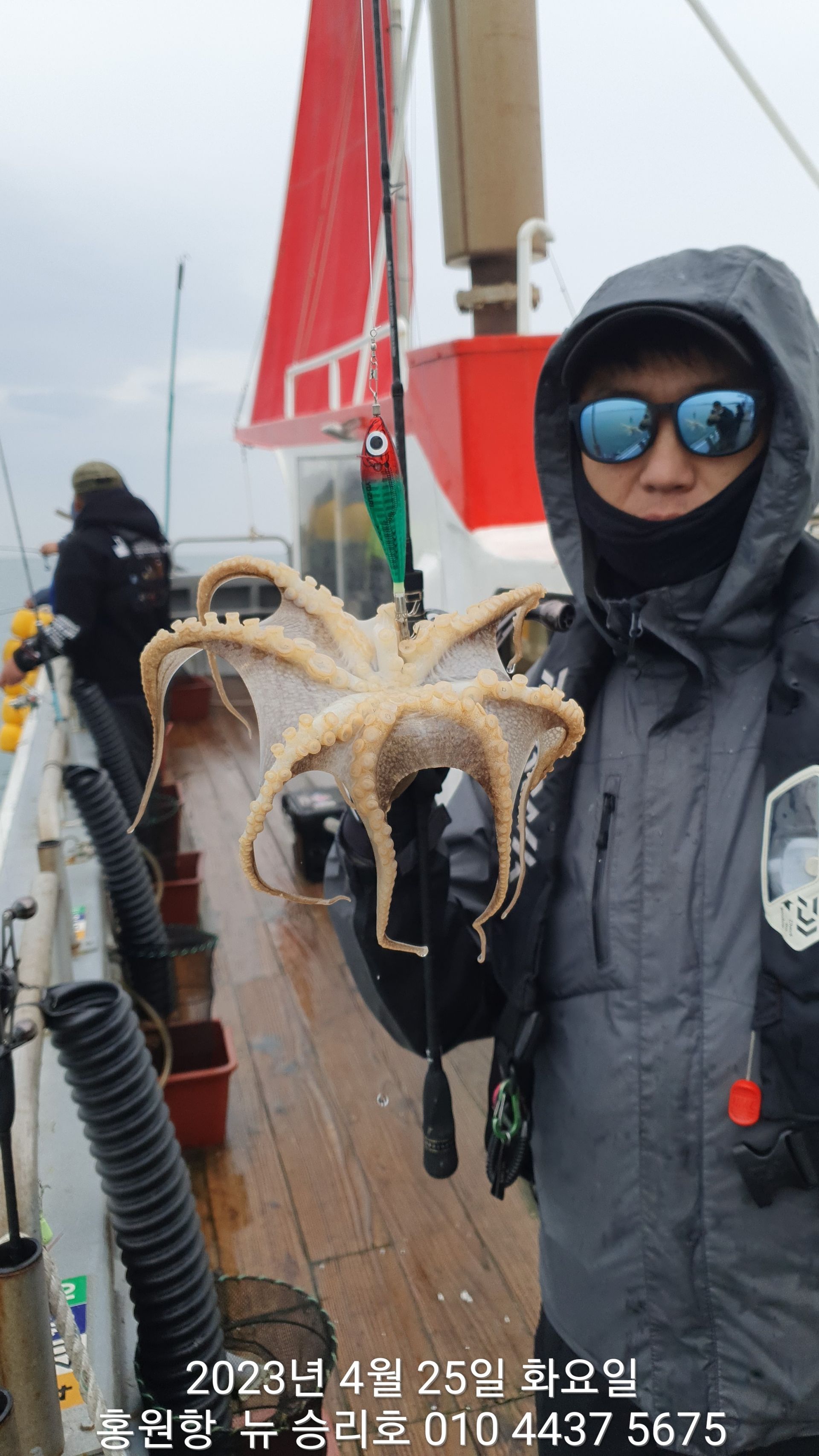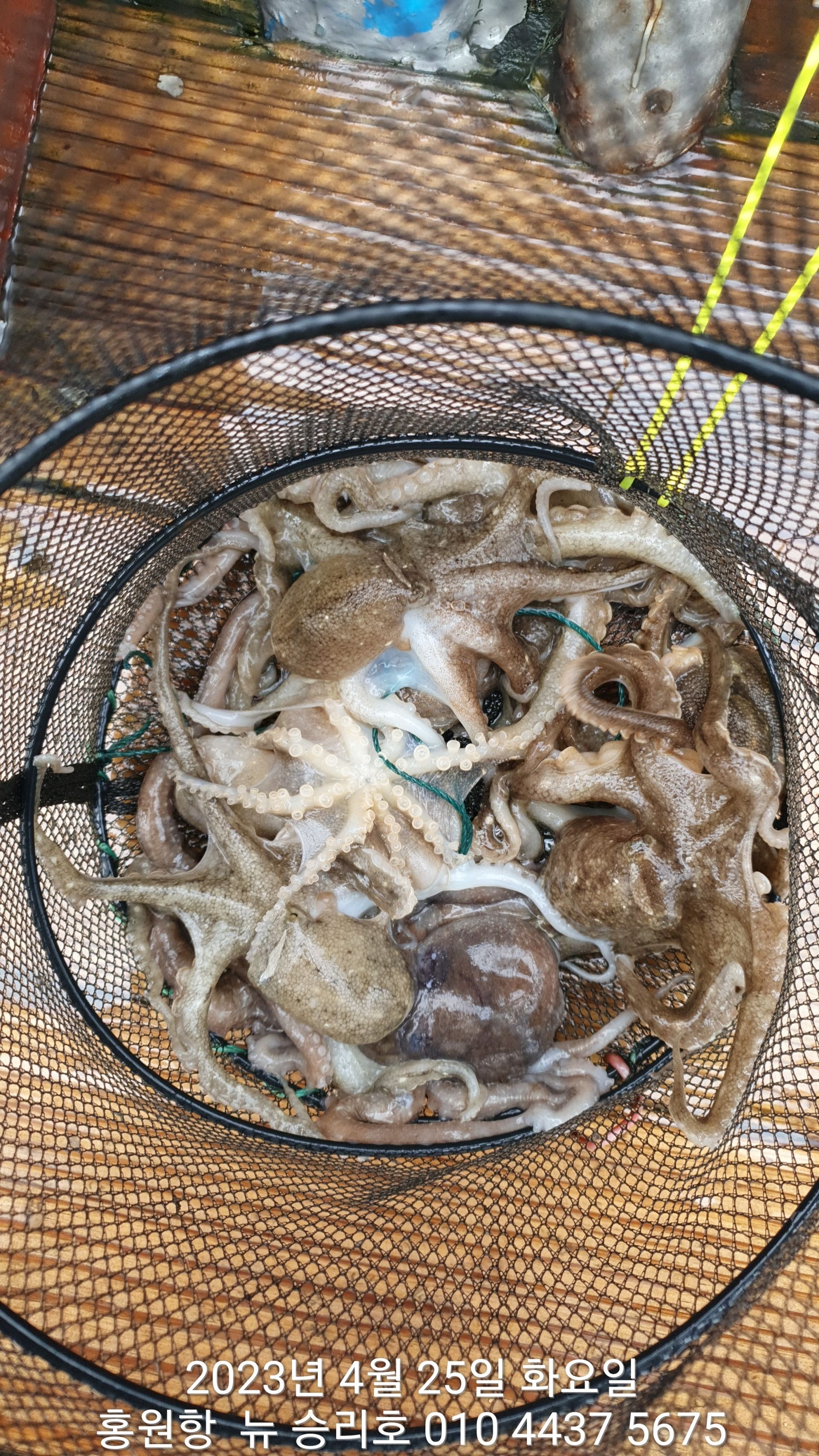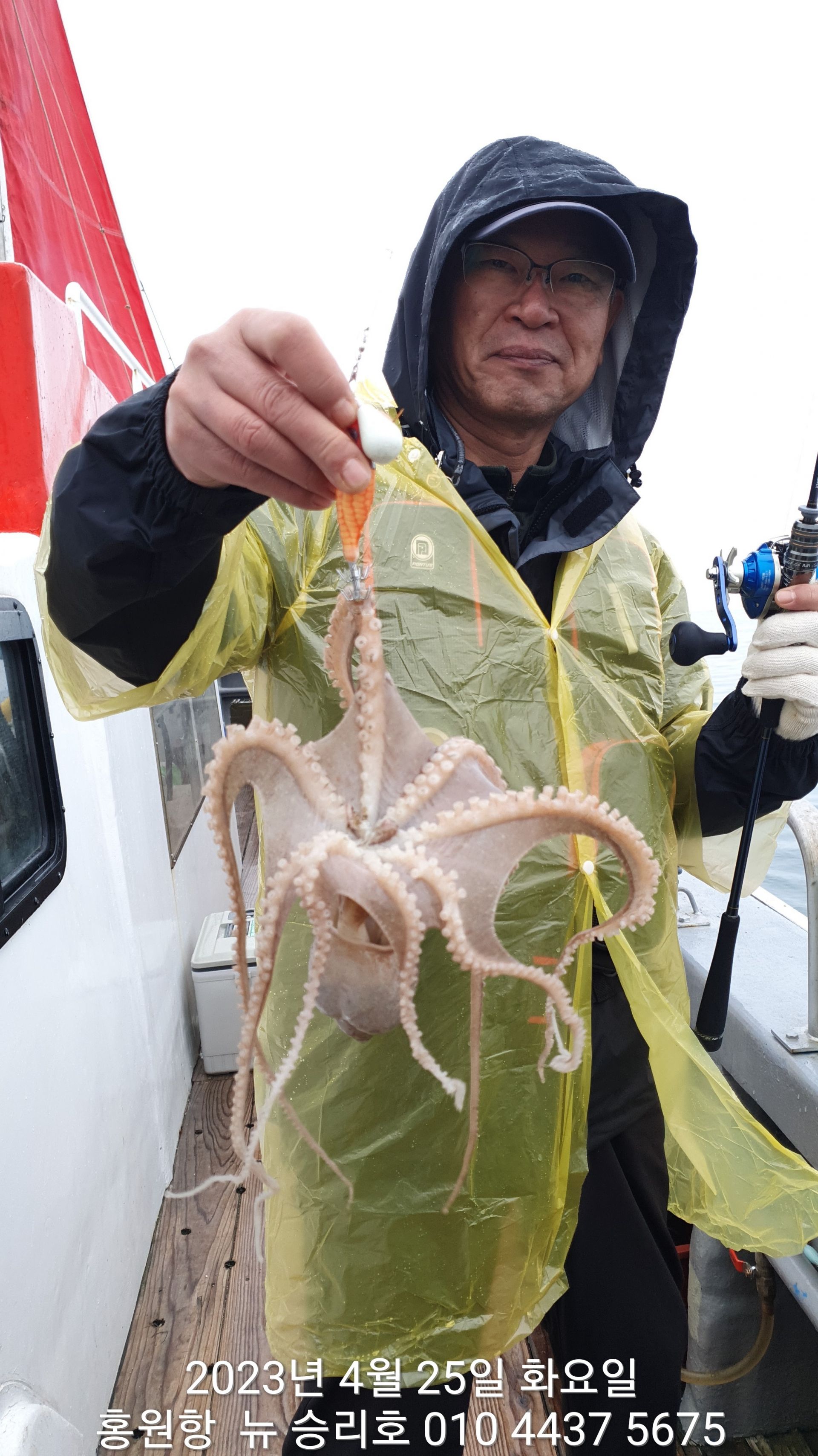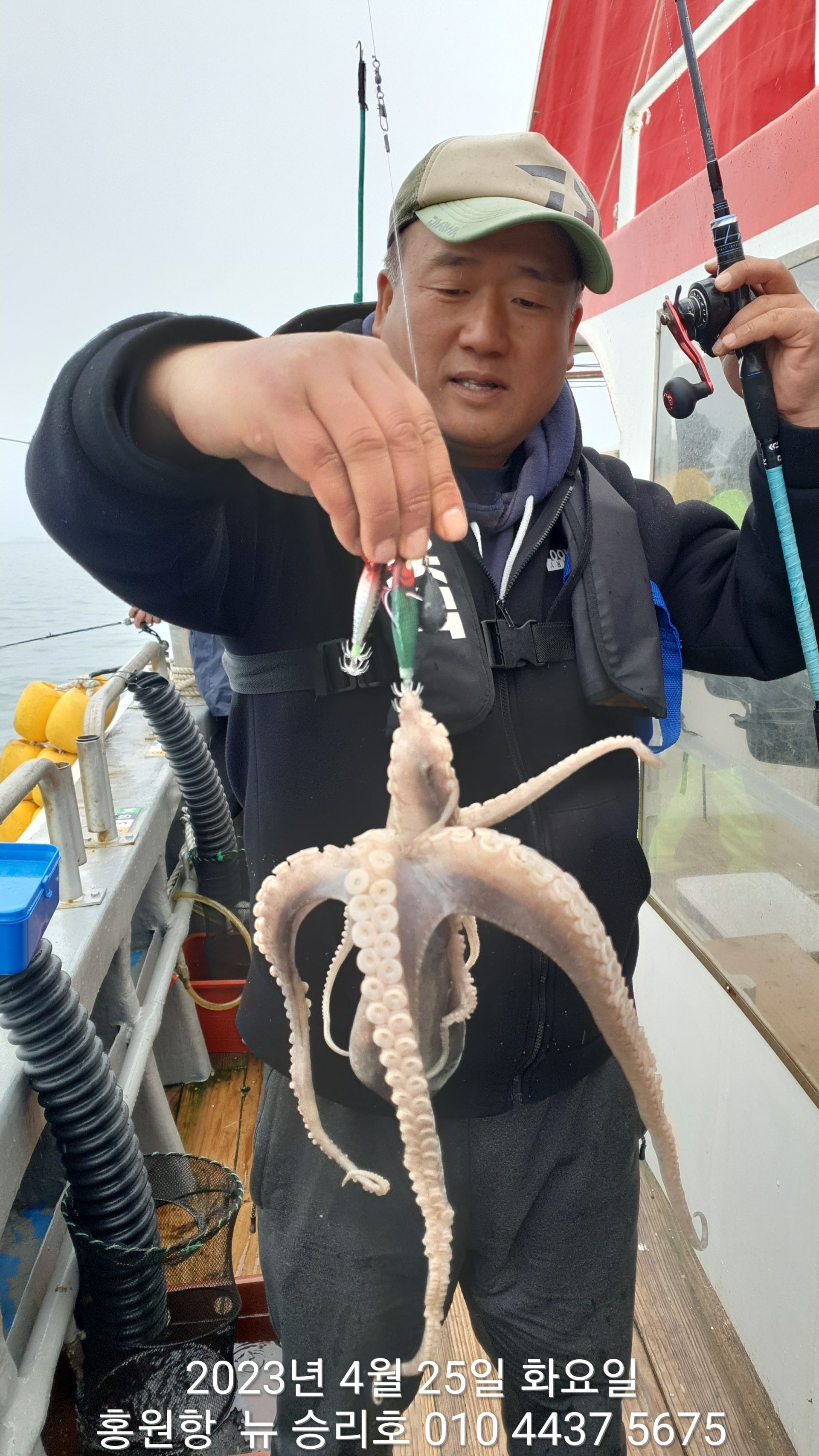 안녕하세요?홍원항 요포낚시입니다!!오늘은 이른 새벽부터 내리는 이슬비로 많은 걱정을 하며 출조하였습니다!!그렇지만 ^^위풍당당^^ 뉴~승리호 김선장님의 노련함으로 전원 통발조황입니다!!오늘은 왕 낚지와 쌍걸이가 우중에도 선상은 즐거운 분위기였습니다^^^^^함께 수고하신 조사님들 안녕히 가시고 다음 기회에 뵙겠습니다!!몇번 말씀 드렸지만 평일의 조황이 확실히  좋은듯 합니다!!~~~5월2일 (화요일) ~황금 물때~ 출조에 동참 하실분은 연락 주세요!!~~~23년 봄(알) 쭈꾸미 탐사출조를  4월1일~5월10일 까지합니다!!1) 탐사 출조비 5만원2) 중식 : 커피: 캔음료: 얼음생수:기타음료: 컵라면: 써비스입니다3) 탐사 출조하시는 분께 가을 쭈꾸미 우선 예약 혜택을 드립니다***05시30분까지 오세요!!***