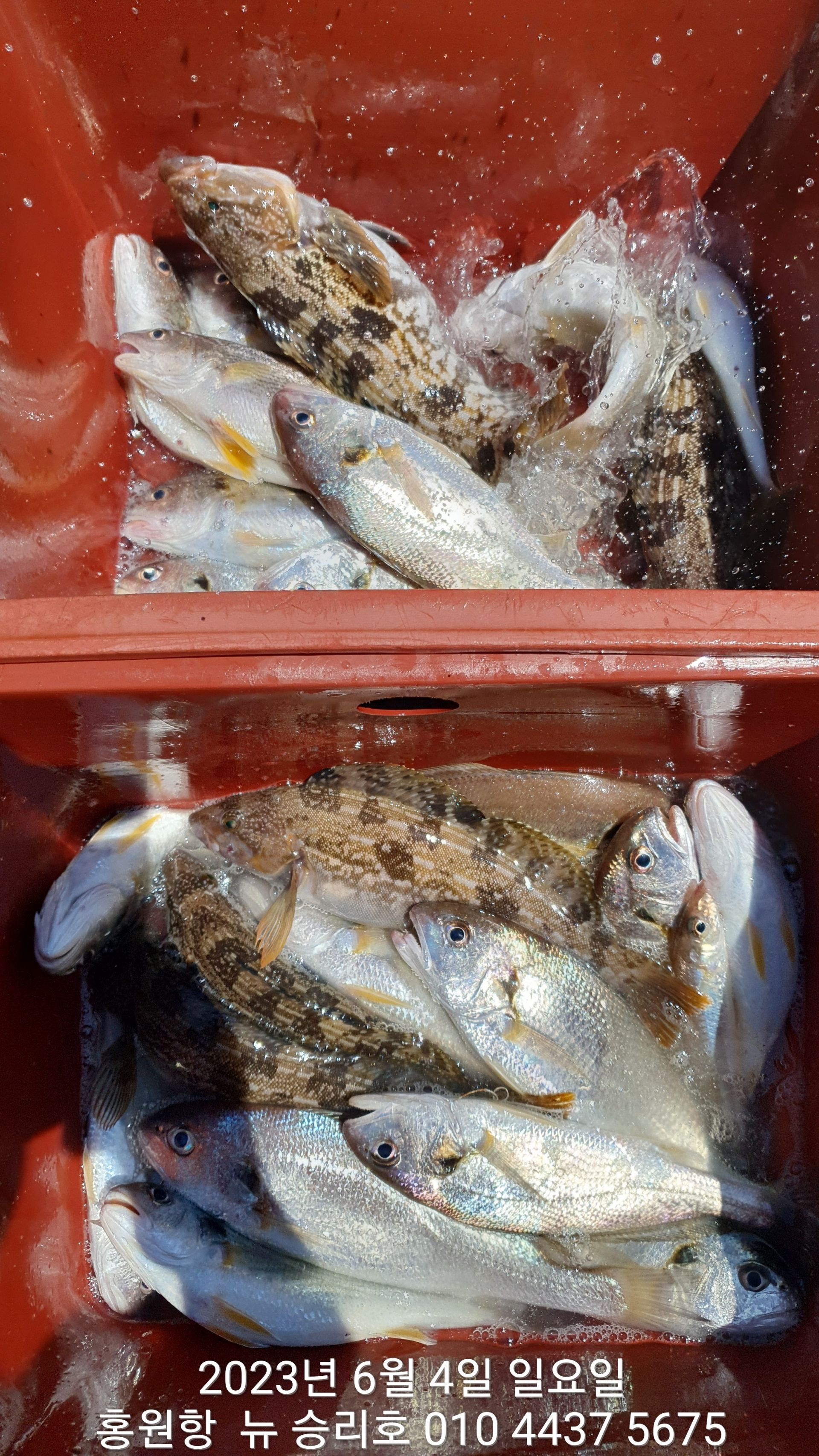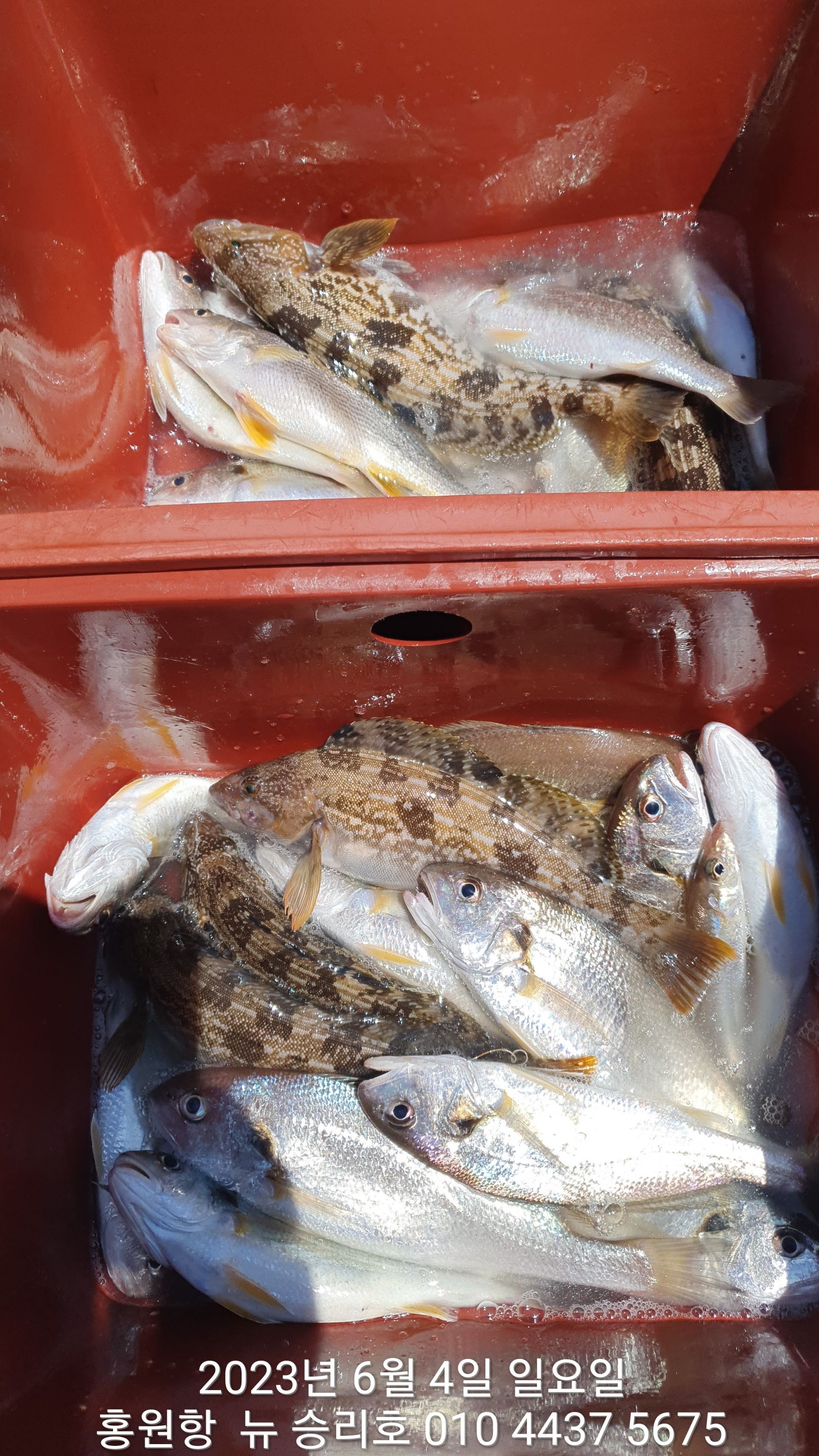 안녕하세요?홍원항 요포낚시입니다!!오늘도 홍원항 ^^위풍당당^^ 뉴~승리호 김선장님 2시간 짬낚시 조황입니다!!이렇듯 요포선단 에서는 조사님들의 조황을 위해 사전에 포인트 확인을 합니다!!저희 요포선단은 6월30일 까지 탐사출조를 (5만원)에 이벤트 합니다!!~~내일(5일) 은 선박점검으로 쉬고 6일부터 이벤트 합니다!!이러한 이벤트를 많은 이용 바랍니다~~황상 최고 보다든 최선을 다해 보답 하겠습니다!!