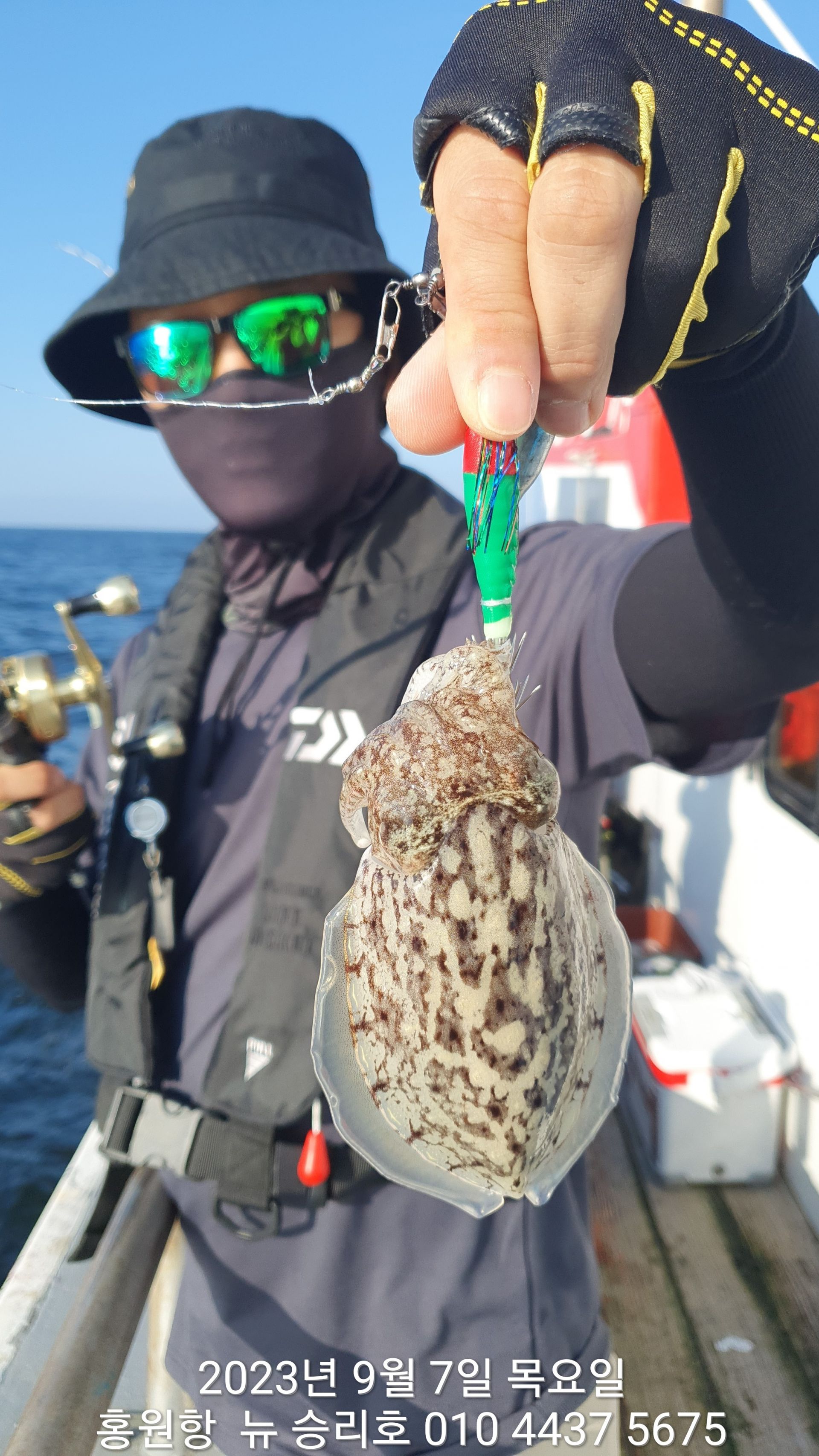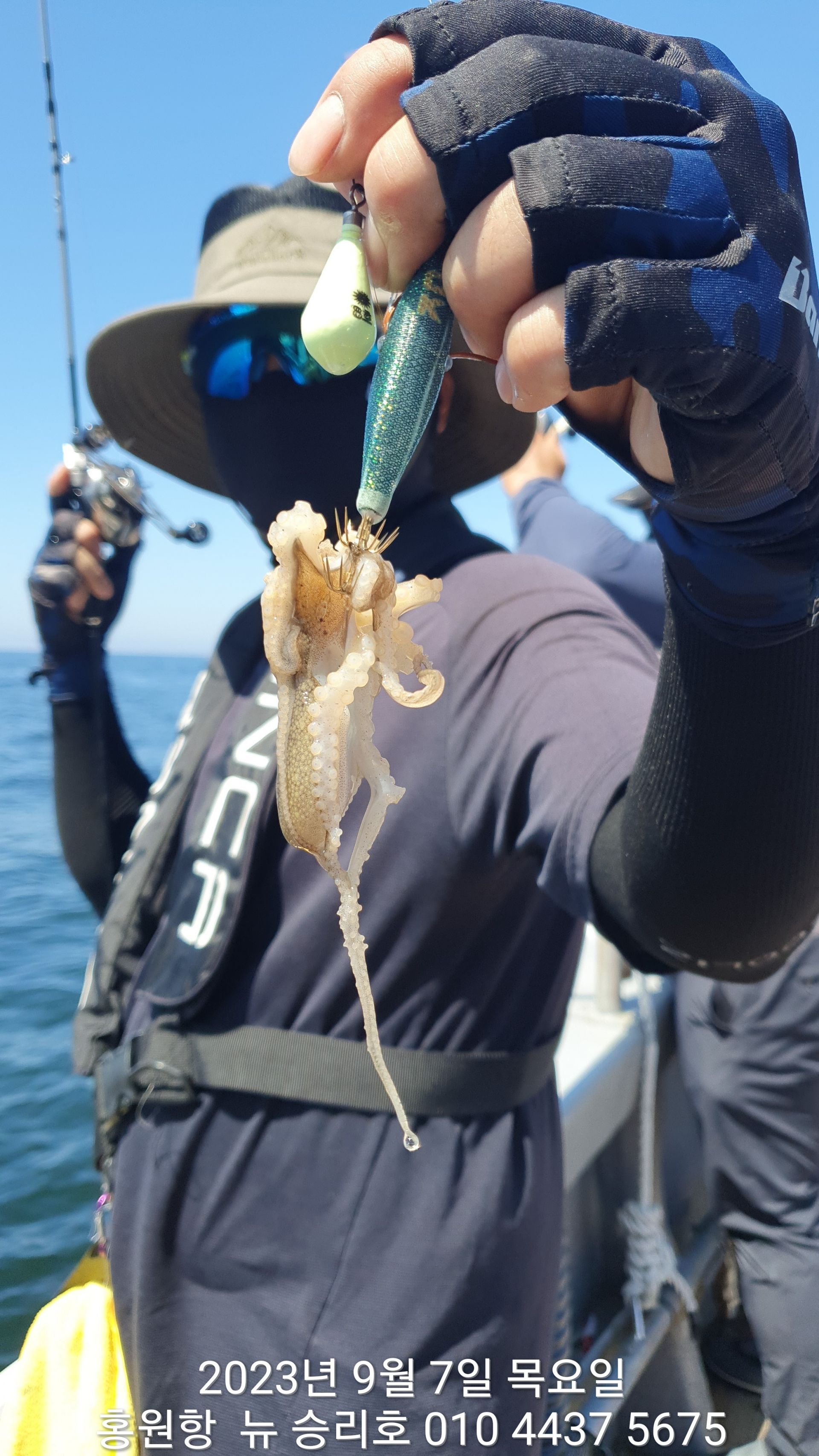 오늘은 무임 승선한 **문어** 가 선상의 즐거움을 더해주었고 갑오징어도 많이 보이기 시작 했습니다^^^^^