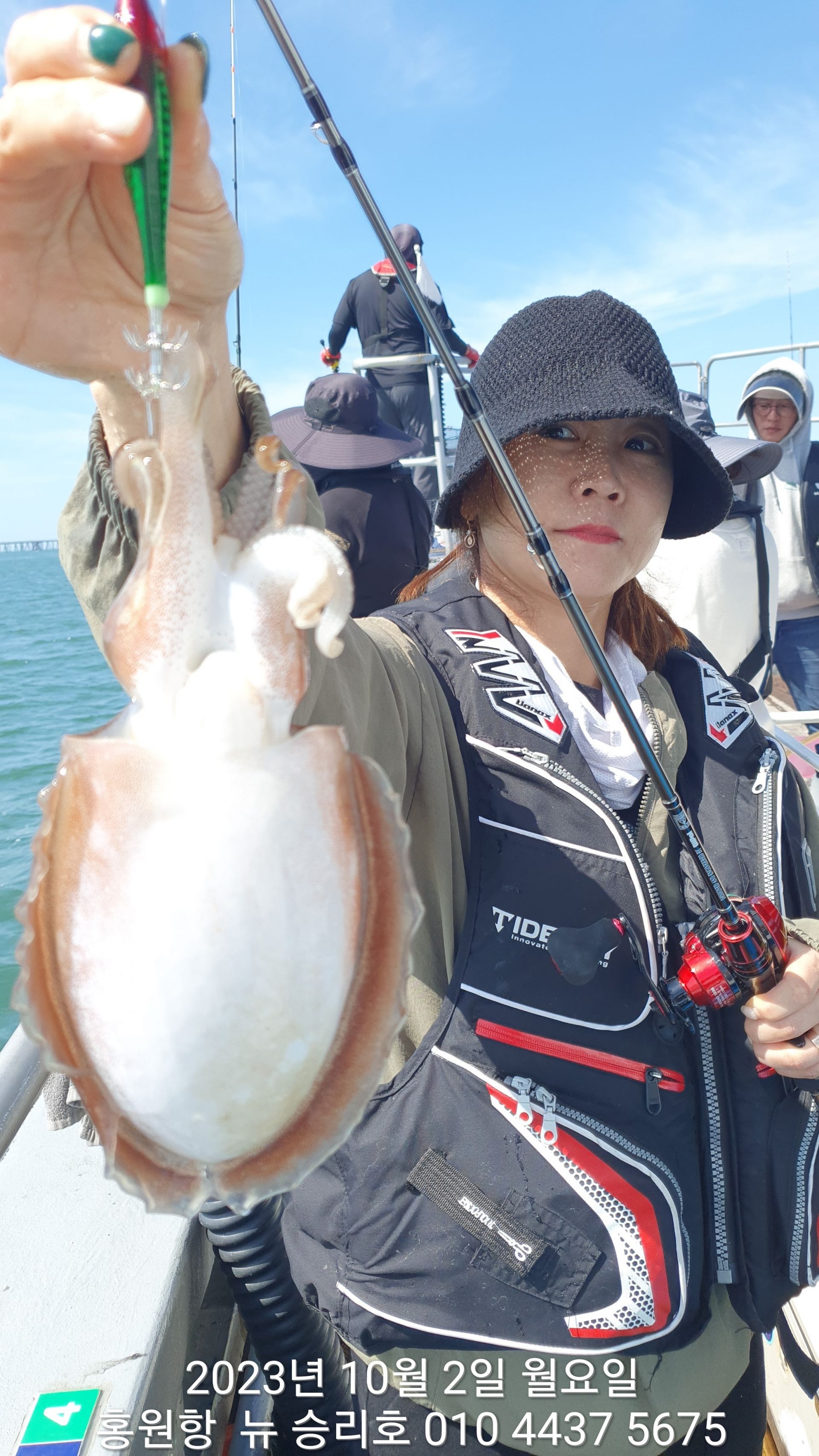 안녕하세요?홍원항 요포낚시입니다!!((뉴~승리호)) 김선장님 과 조사님들  이른 아침부터 좋은 조황으로 모두들 홧~팅~~입니다!!오늘도 김선장님 예상대로 물때에 맞추어 **갑오징어** 먼저공략 이군요~~~조사님들중 오늘도( 여성 ) 조사님들의 선전 하시는군요^^^^우짜든 이러한 호조황으로 오늘도 대~박~~을 기대 합니다!! ***중식 : 커피: 캔음료: 생수:기타음료: 컵라면:지퍼팩(봉지) 써비스***    ~~긴급~~ 내일/10월10일(황금 물때) 자리여유 있으니 동참 하실분은 연락 주세요!!저희 요포선단은 항상 최고 보다는 최선을 다해 보답 하겠습니다!!^^^^^ 저희 요포선단은 쭈꾸미 선비로 갑오징어 낚시를 **병행** 해드립니다!!^^^^^^