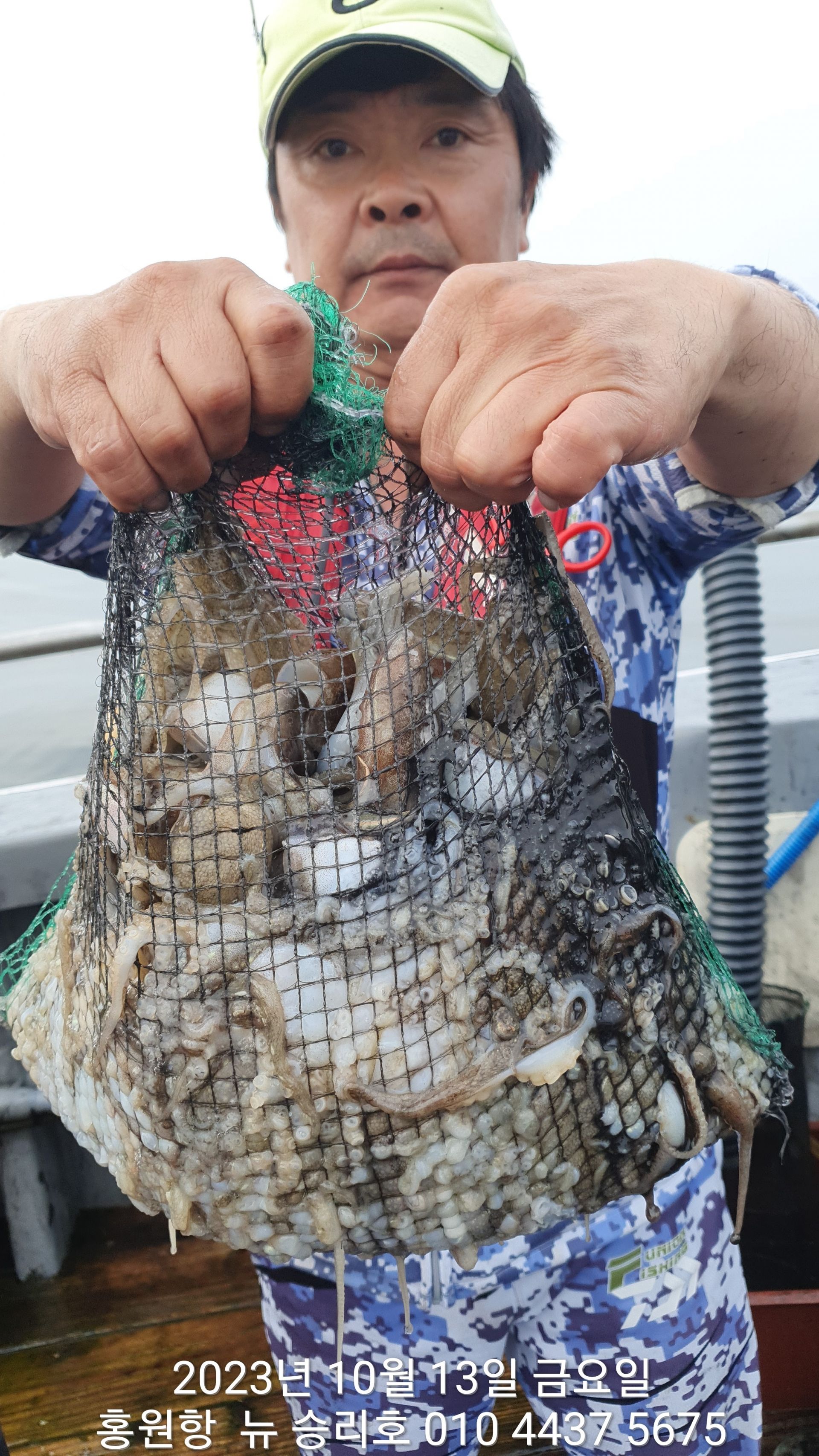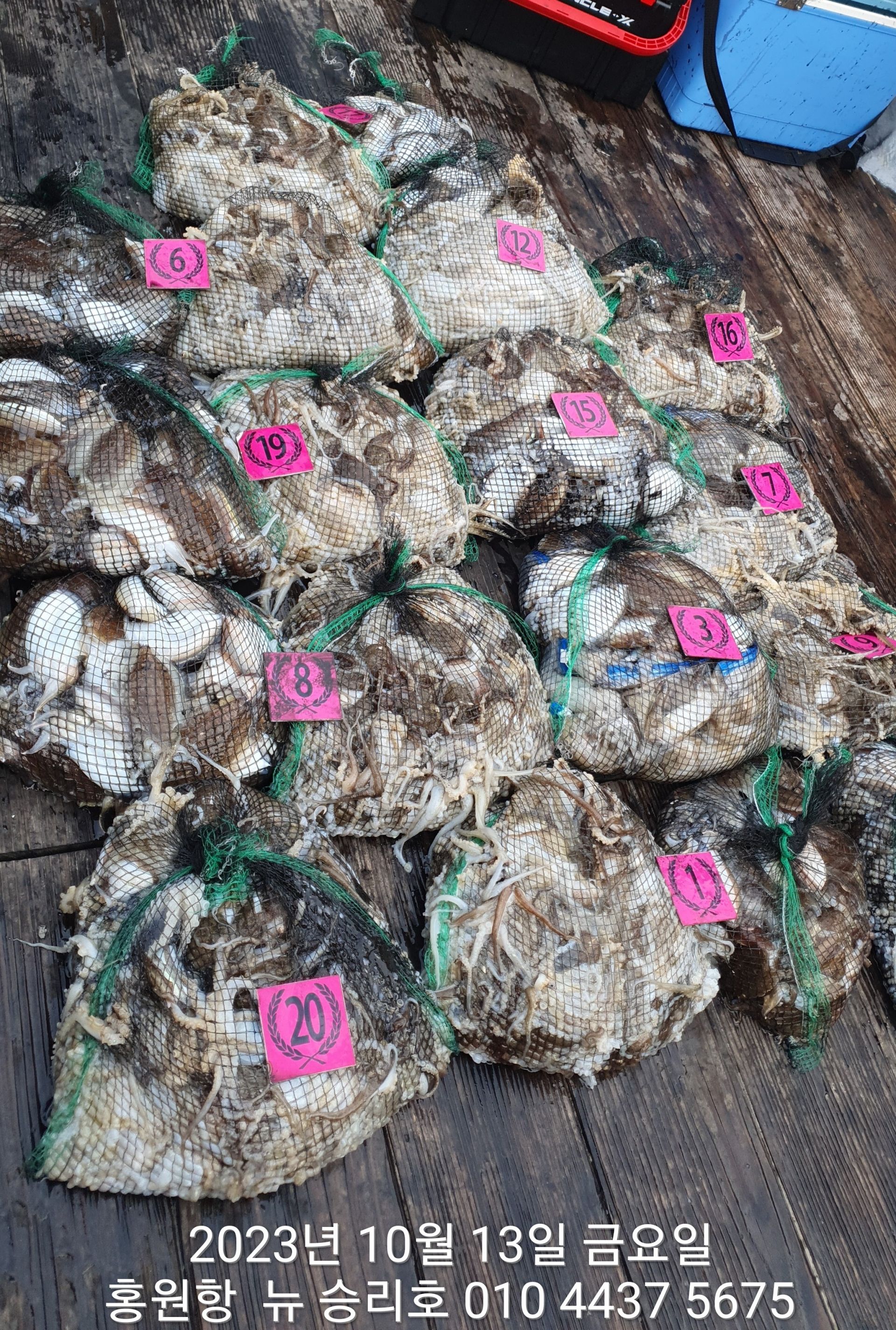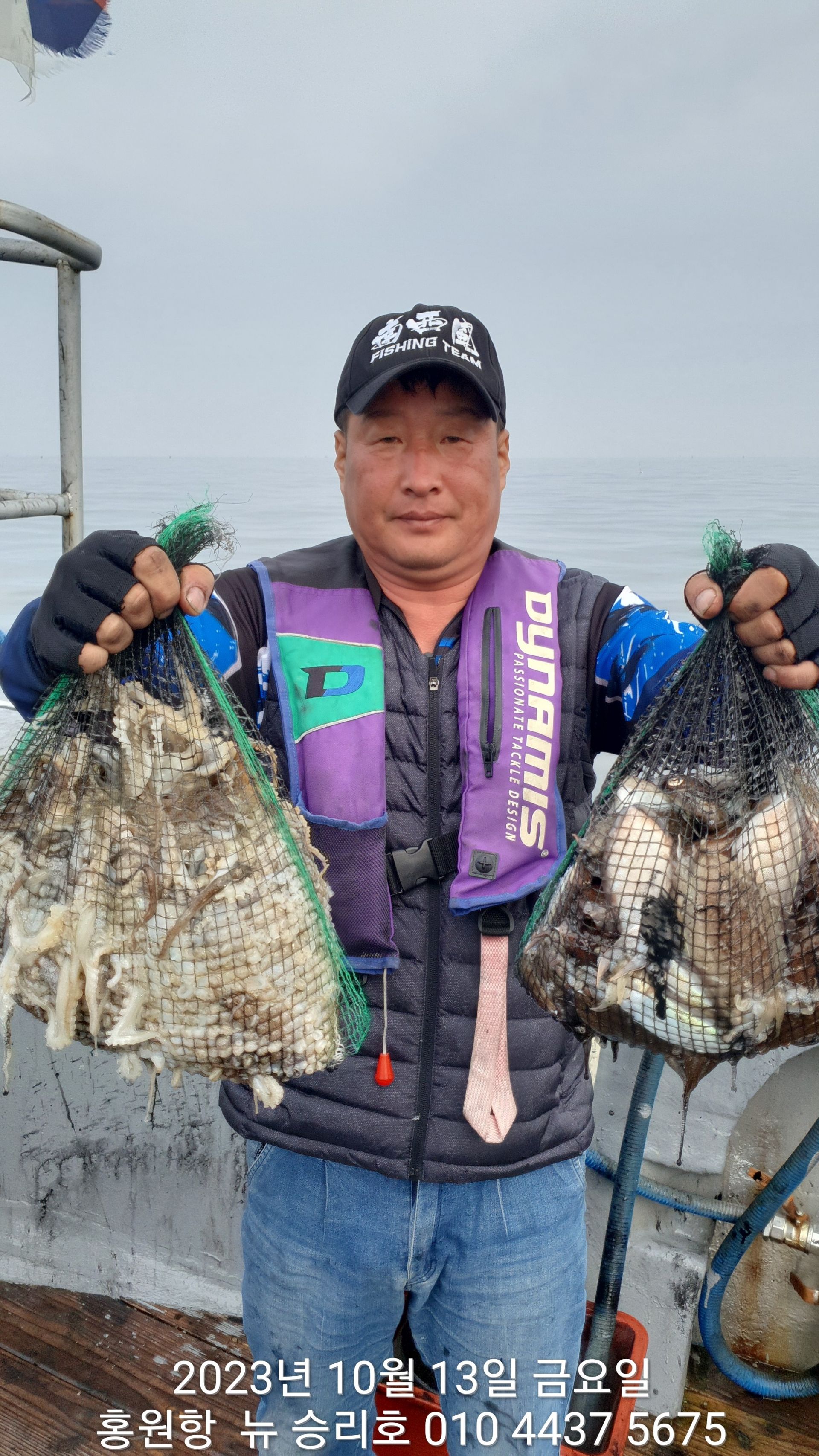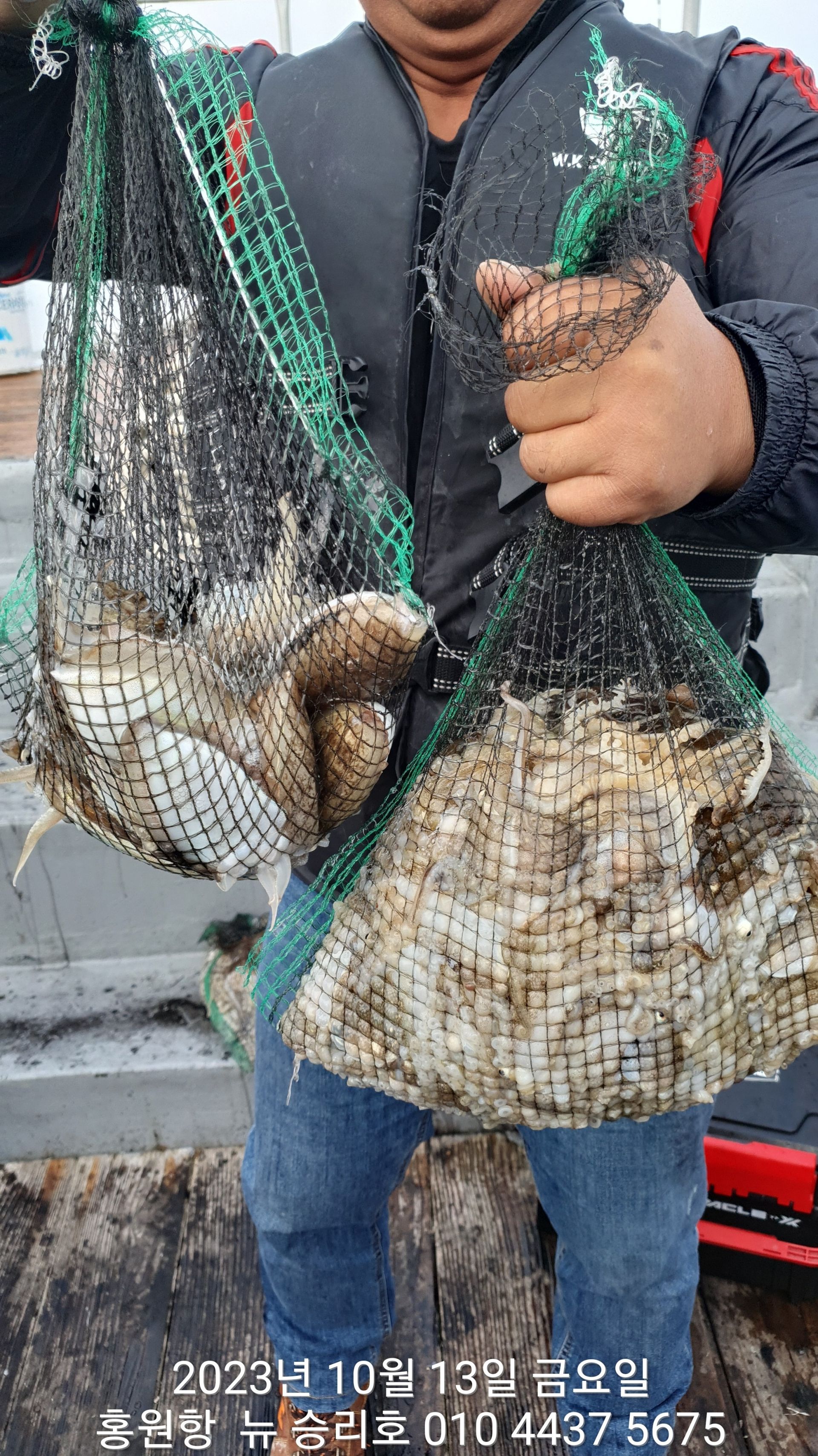 안녕하시세요?홍원항 요포낚시입니다!!((뉴~승리호)) 오늘은 10분의 조사님과 홧~팅~~하신 어부들의 조황 입니다!!10분승선에 망태기 숫자는 는 허~얼~~1인 2망태기도 보통이 넘는 완~죤~~ 대박 입니다!!이러한 조황이 ~~~홍원항~~~ ^^위풍당당^^ ((뉴~승리호)) 조황입니다^^^^^^대~박~~ 조황에 수고하신 조사님들 안녕히 가시고 다음 기회에 뵙겠습니다!! ***중식 : 커피: 캔음료: 생수:기타음료: 컵라면:지퍼팩(봉지) 써비스***    ~~긴급~~ 내일/13일(갑이사냥/황금 물때) 자리여유 있으니 동참 하실분은 연락 주세요!!#15일(일요일)도# 단체팀 취소로 잔여석 있으니 바다에 보관해둔 고기 가져가세요!! 저희 요포선단은 항상 최고 보다는 최선을 다해 보답 하겠습니다!!^^^^^ 저희 요포선단은 쭈꾸미 선비로 갑오징어 낚시를 **병행** 해드립니다!!^^^^^^