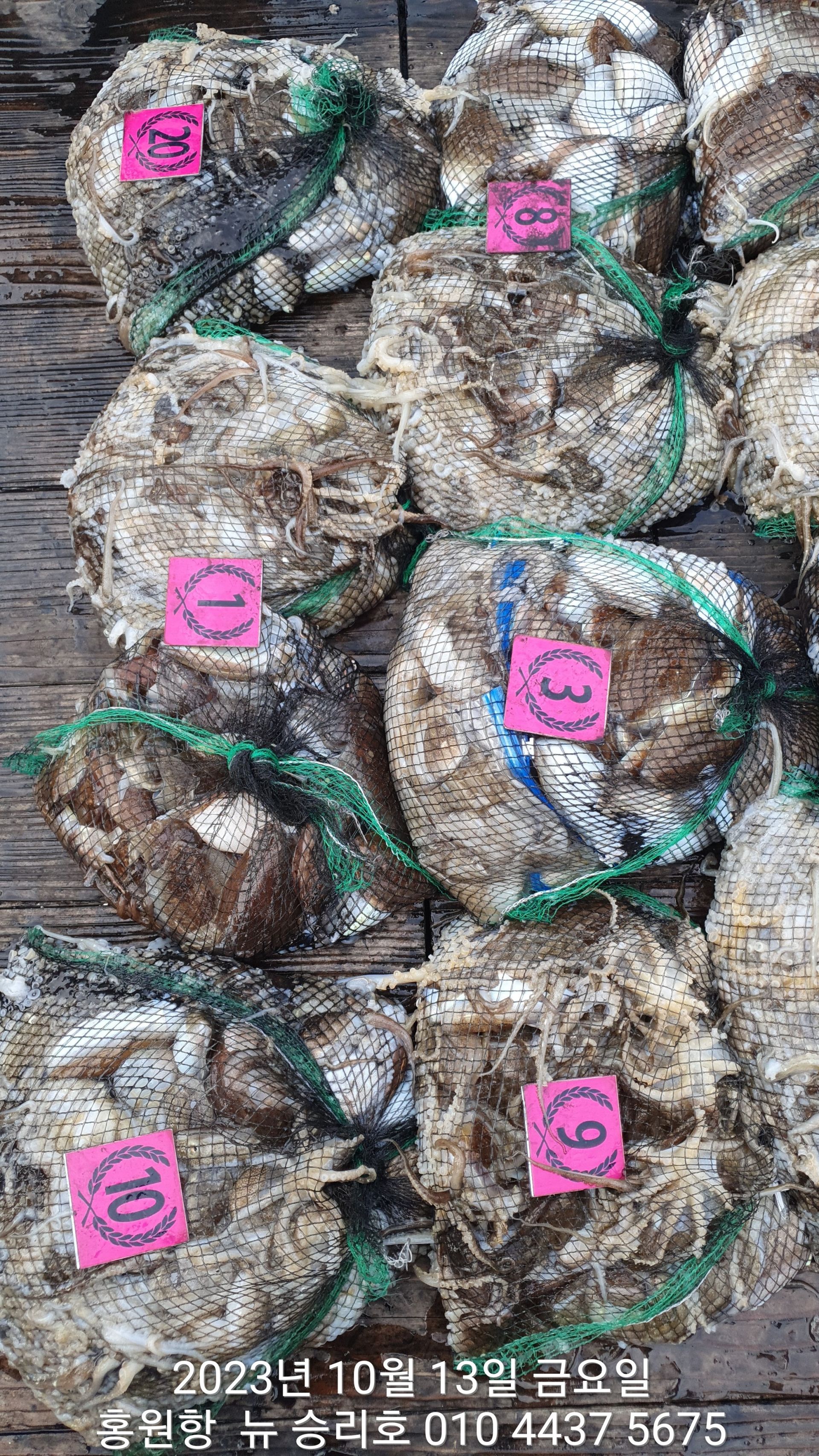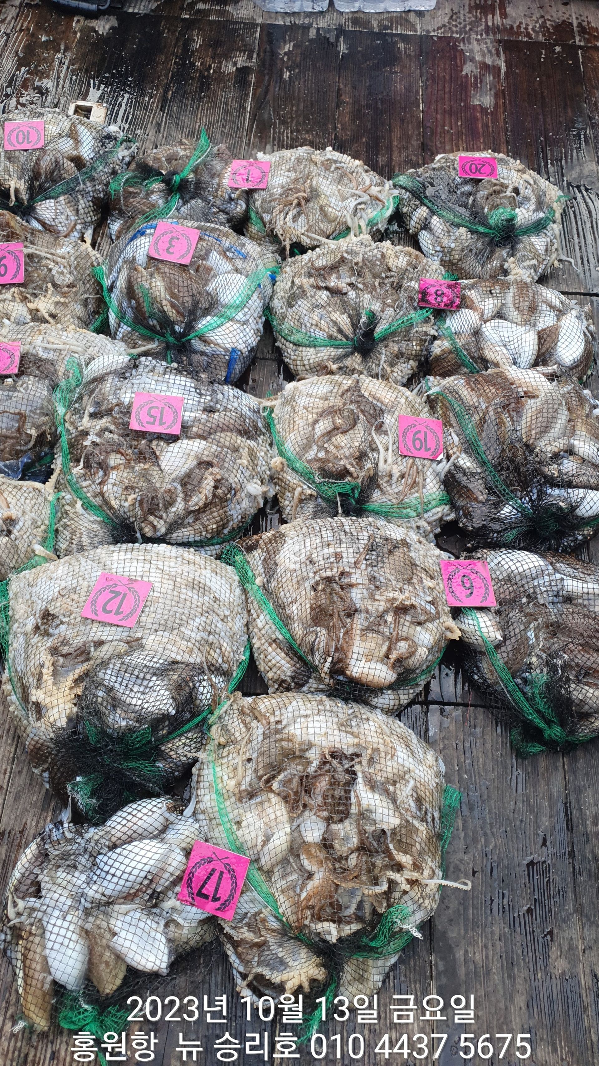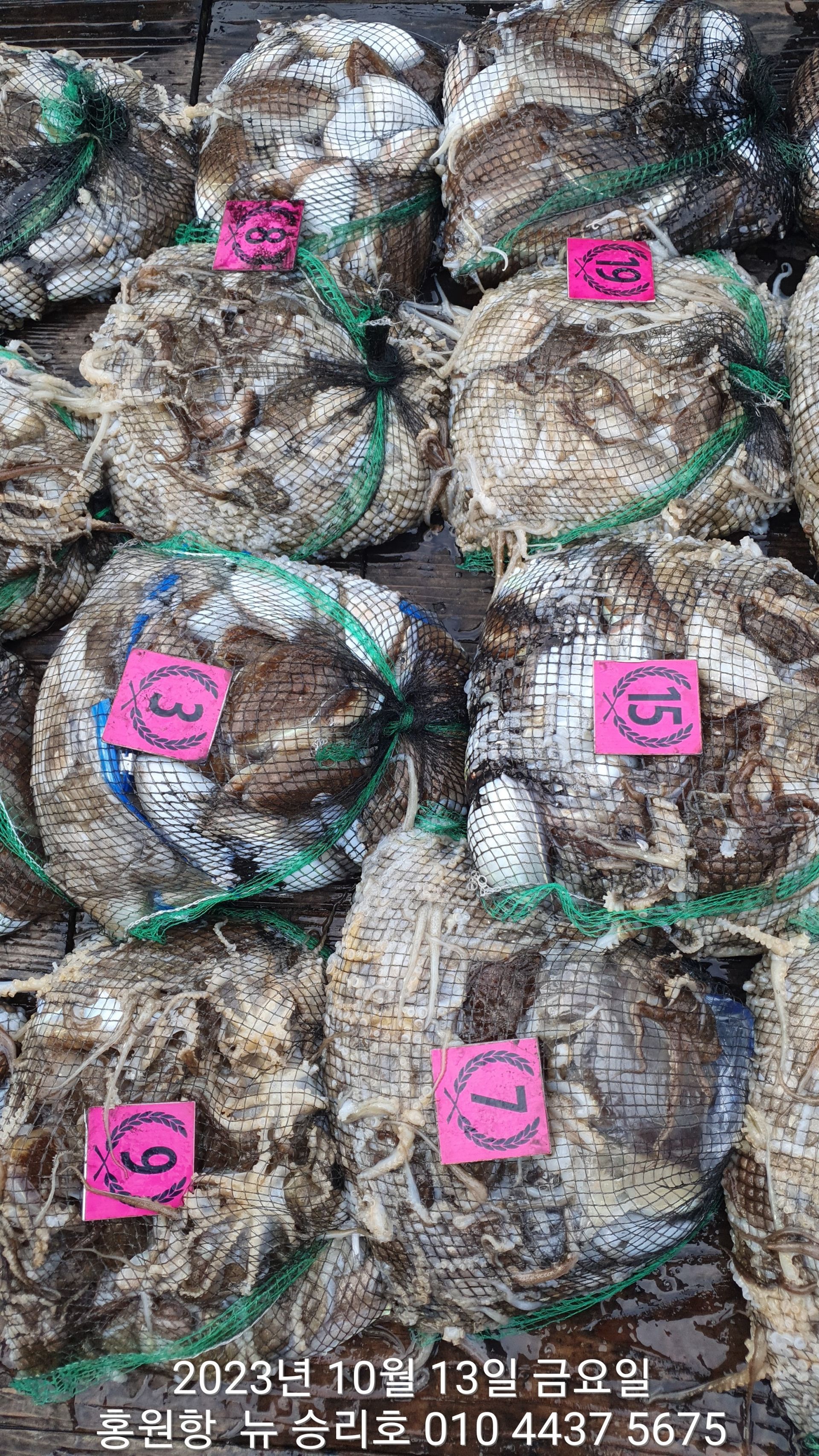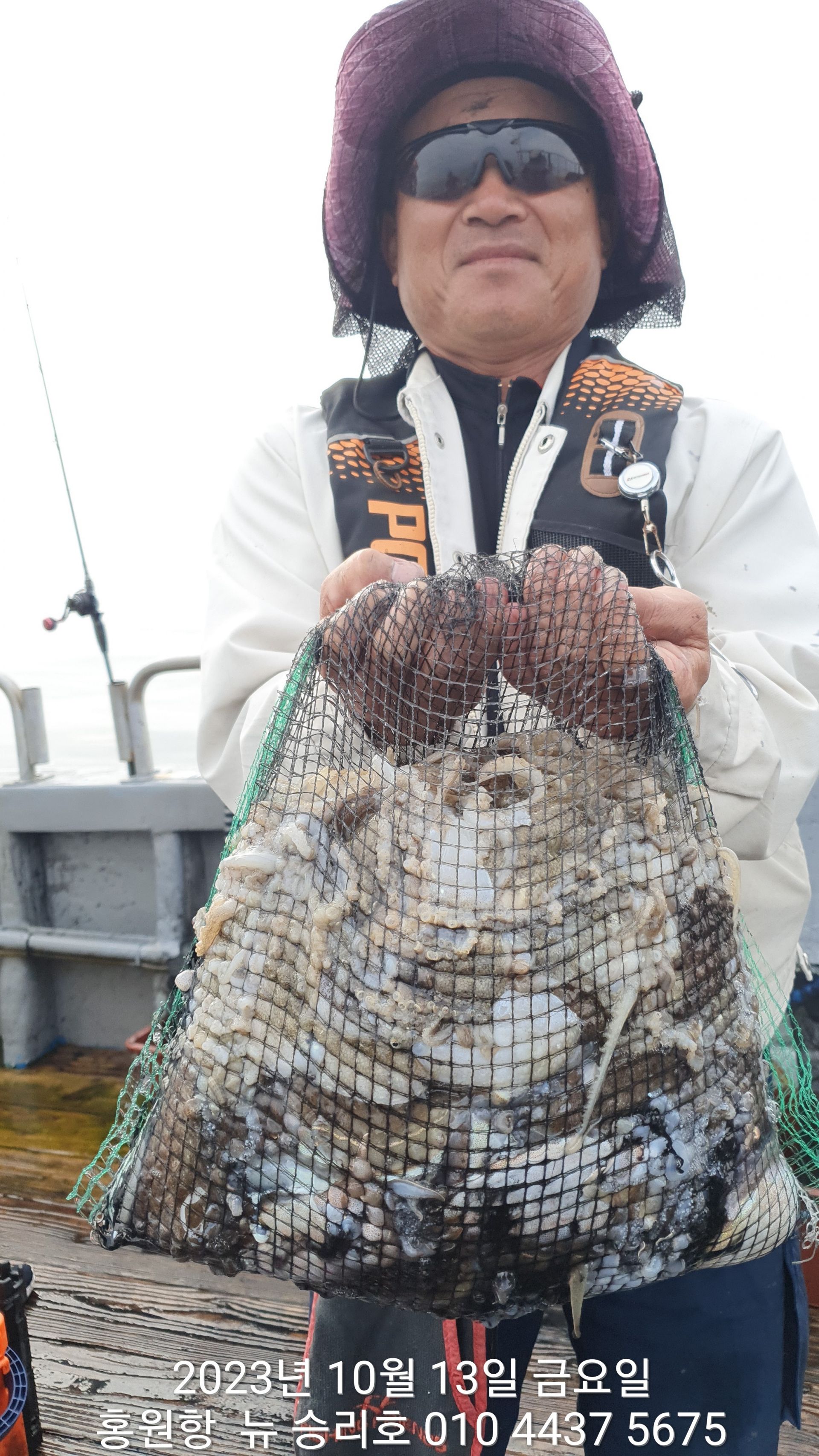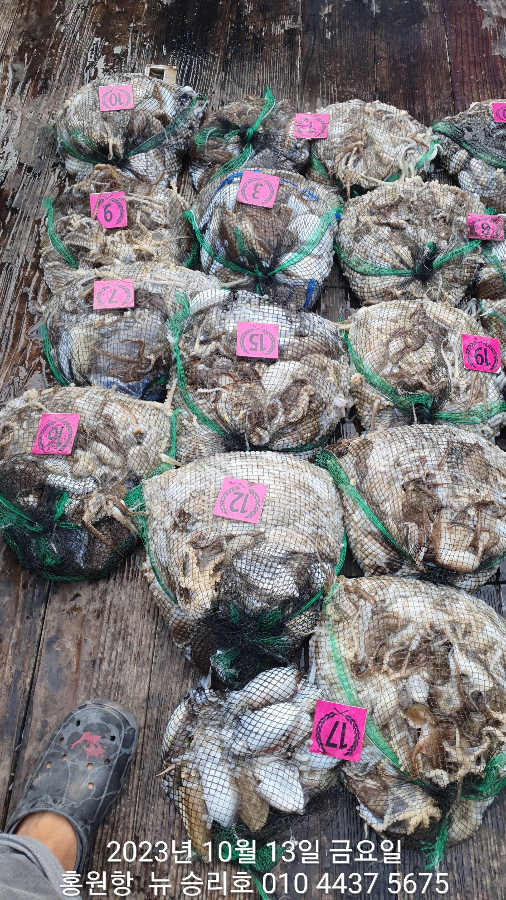 안녕하시세요?홍원항 요포낚시입니다!!((뉴~승리호)) 오늘은 10분의 조사님과 홧~팅~~하신 어부들의 조황 입니다!!10분승선에 망태기 숫자는 는 허~얼~~1인 2망태기도 보통이 넘는 완~죤~~ 대박 입니다!!이러한 조황이 ~~~홍원항~~~ ^^위풍당당^^ ((뉴~승리호)) 조황입니다^^^^^^대~박~~ 조황에 수고하신 조사님들 안녕히 가시고 다음 기회에 뵙겠습니다!! ***중식 : 커피: 캔음료: 생수:기타음료: 컵라면:지퍼팩(봉지) 써비스***    ~~긴급~~ 내일/13일(갑이사냥/황금 물때) 자리여유 있으니 동참 하실분은 연락 주세요!!#15일(일요일)도# 단체팀 취소로 잔여석 있으니 바다에 보관해둔 고기 가져가세요!! 저희 요포선단은 항상 최고 보다는 최선을 다해 보답 하겠습니다!!^^^^^ 저희 요포선단은 쭈꾸미 선비로 갑오징어 낚시를 **병행** 해드립니다!!^^^^^^