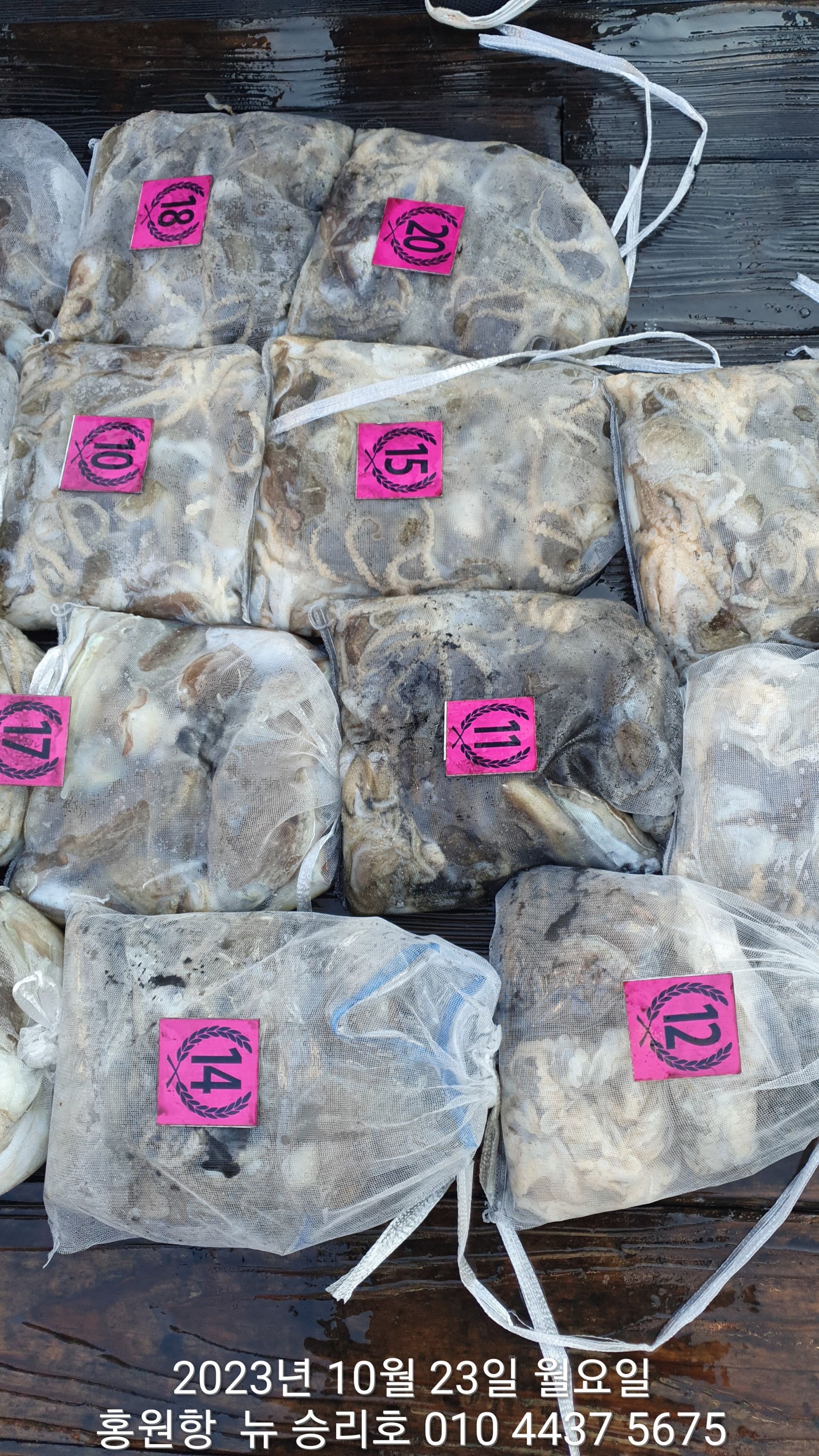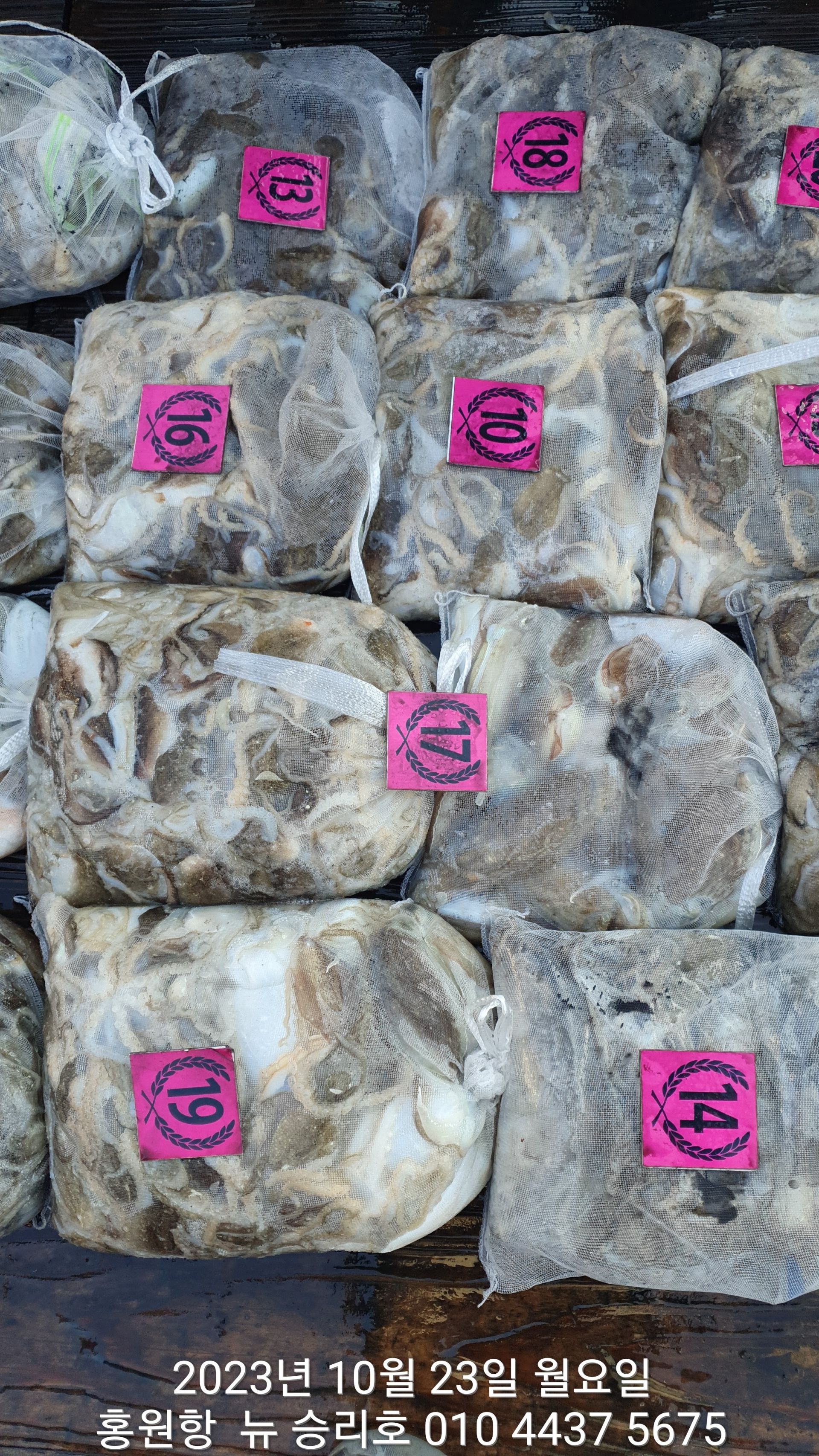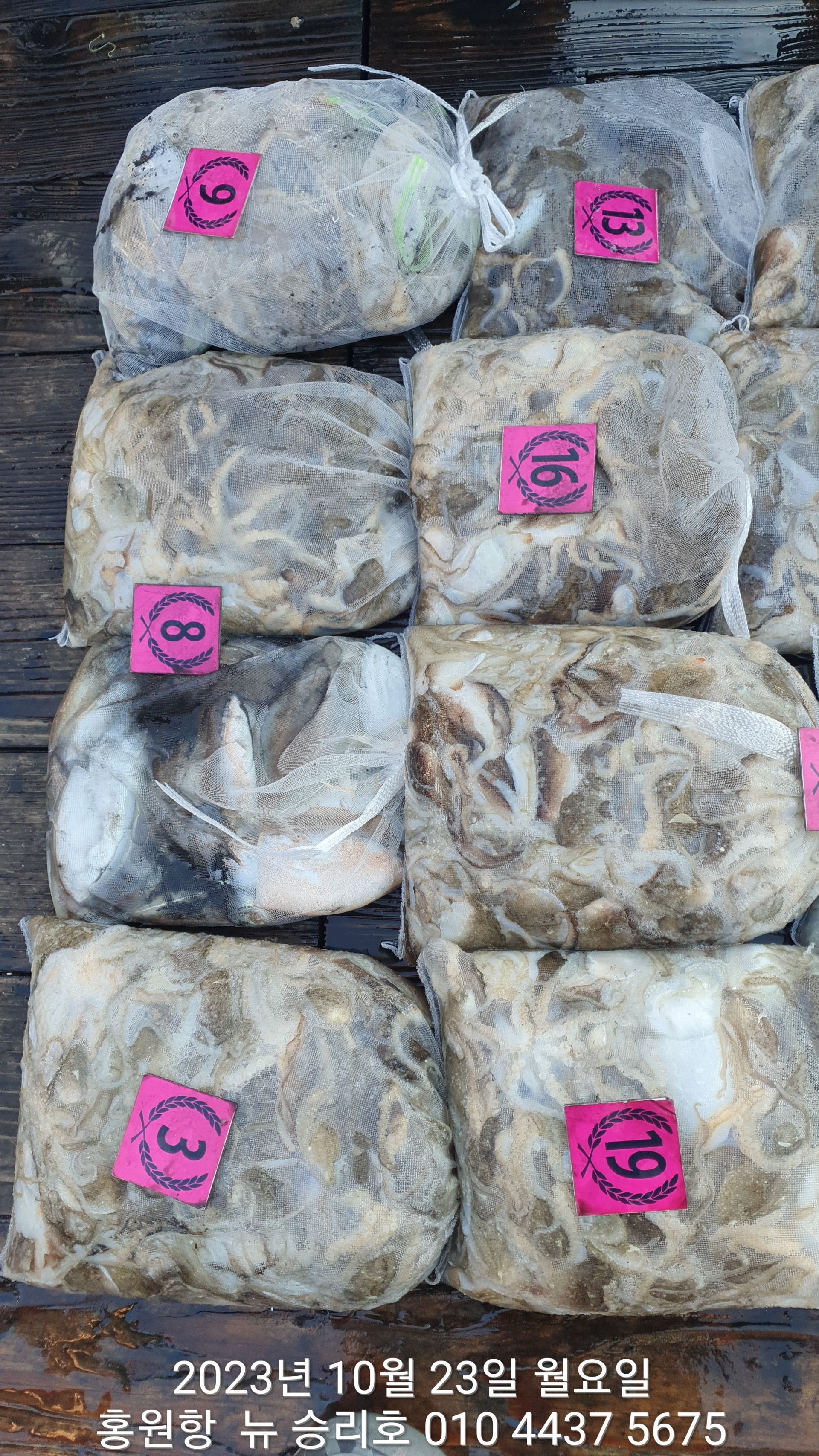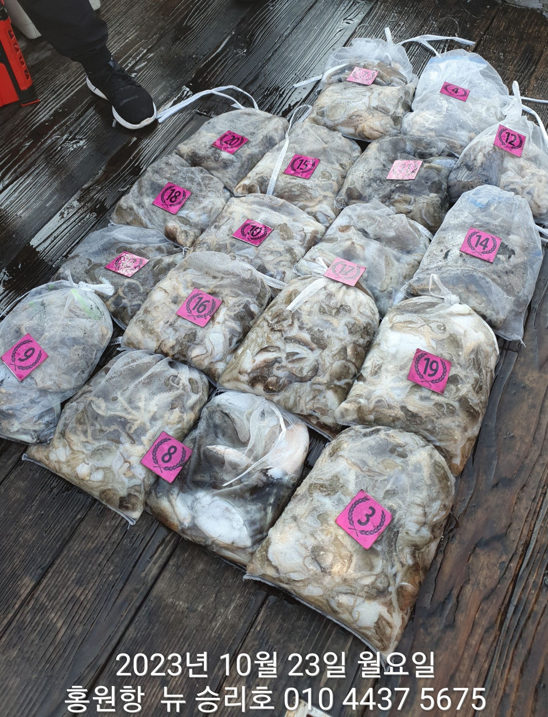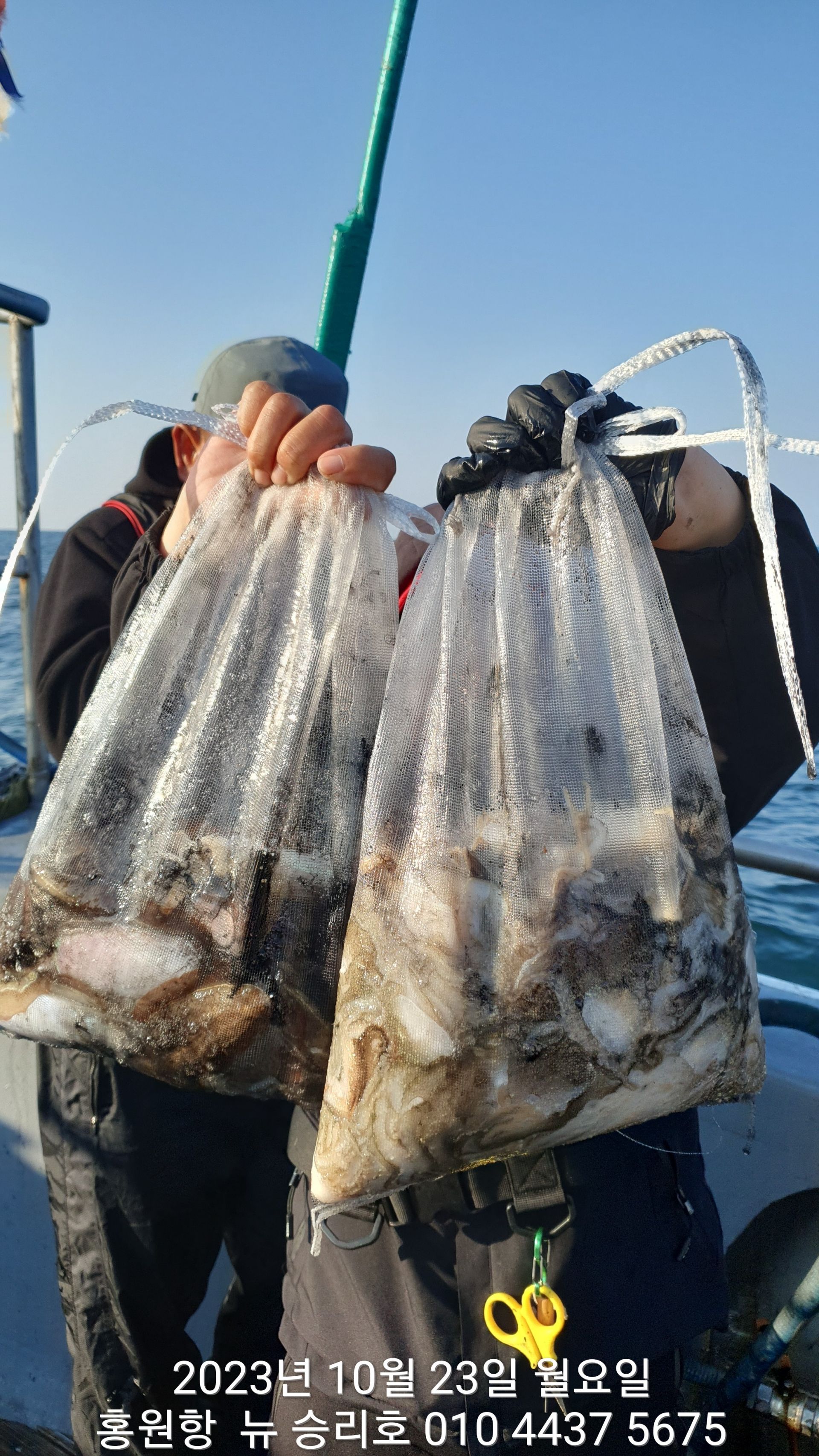 안녕하시세요?홍원항 요포낚시입니다!!((뉴~승리호)) 오늘은 10분의 조사님과 홧~팅~~하신 어부들의 조황 입니다!!10분승선에 망태기 숫자는 는 허~얼~~1인 2망태기도 보통이 넘는 완~죤~~ 대박 입니다!!이러한 조황이 ~~~홍원항~~~ ^^위풍당당^^ ((뉴~승리호)) 조황입니다^^^^^^대~박~~ 조황에 수고하신 조사님들 안녕히 가시고 다음 기회에 뵙겠습니다!! ***중식 : 커피: 캔음료: 생수:기타음료: 컵라면:지퍼팩(봉지) 써비스***    ~~긴급~~ 내일/13일(갑이사냥/황금 물때) 자리여유 있으니 동참 하실분은 연락 주세요!!#15일(일요일)도# 단체팀 취소로 잔여석 있으니 바다에 보관해둔 고기 가져가세요!! 저희 요포선단은 항상 최고 보다는 최선을 다해 보답 하겠습니다!!^^^^^ 저희 요포선단은 쭈꾸미 선비로 갑오징어 낚시를 **병행** 해드립니다!!^^^^^^