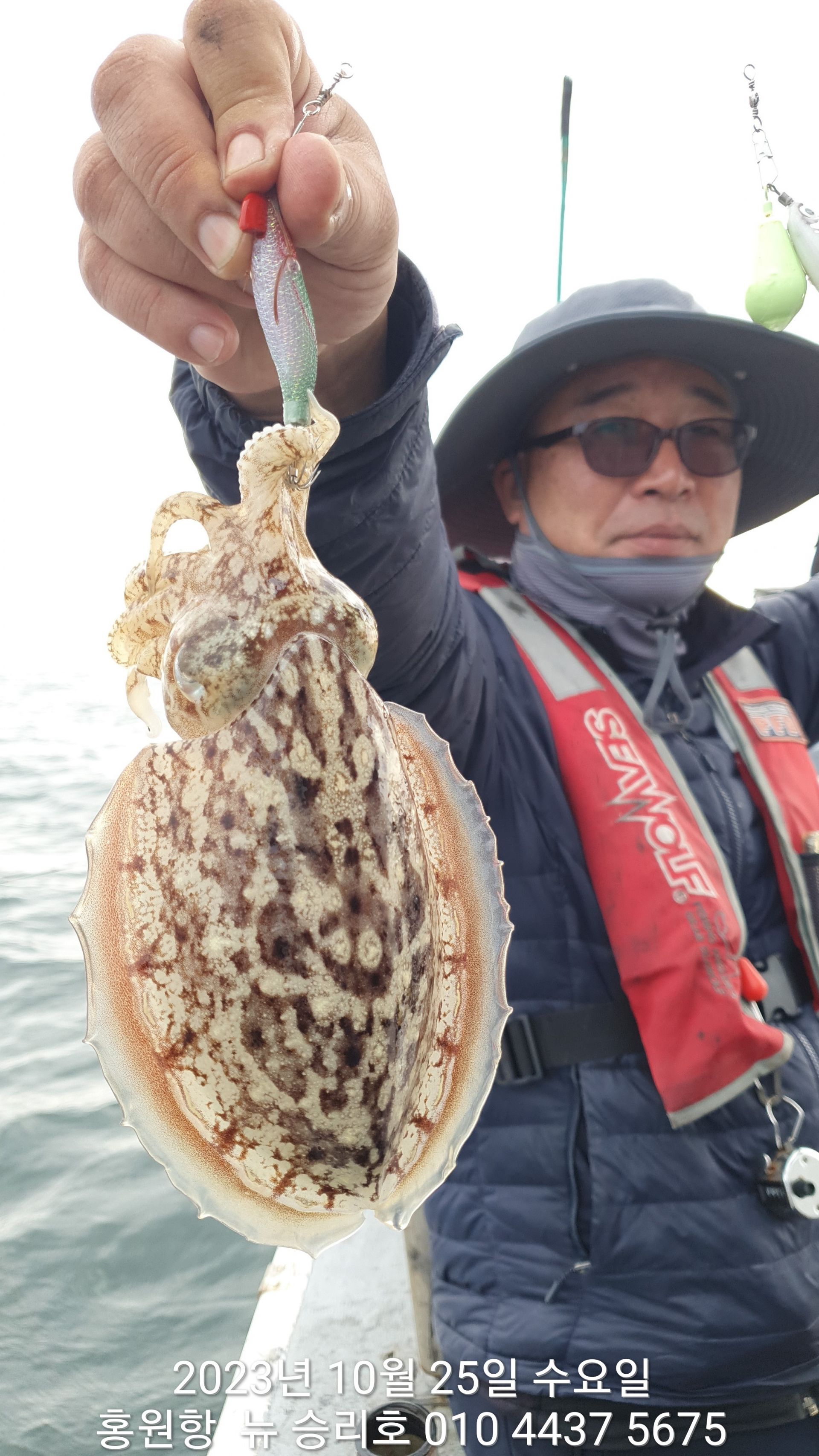 10월31일~~홍원항~~^^위풍당당^^(뉴~승리호) 단체팀 *왕~갑오징어* 쪼~끔~ 서운한 조황 입니다!!