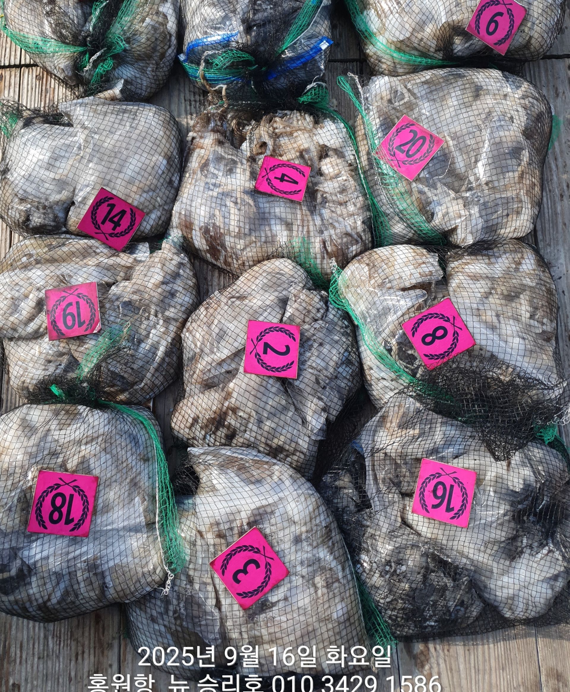 ***쭈꾸미*** 홍원항^위풍당당^(뉴~승리호)9월16일 오늘도 *전원* 엄~청~난 망태기 조황입니다!!