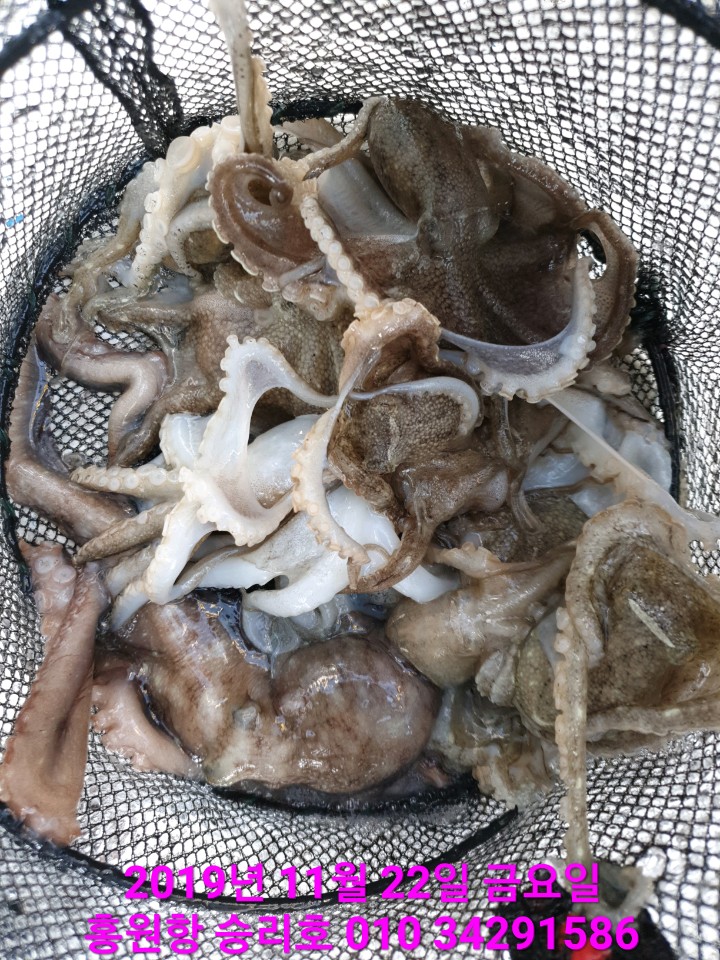 11월5일 홍원항 **요포선단** (승리호) 갑오징어&쭈꿈; 망태기는 전원 대~만~족 조황입니다!!