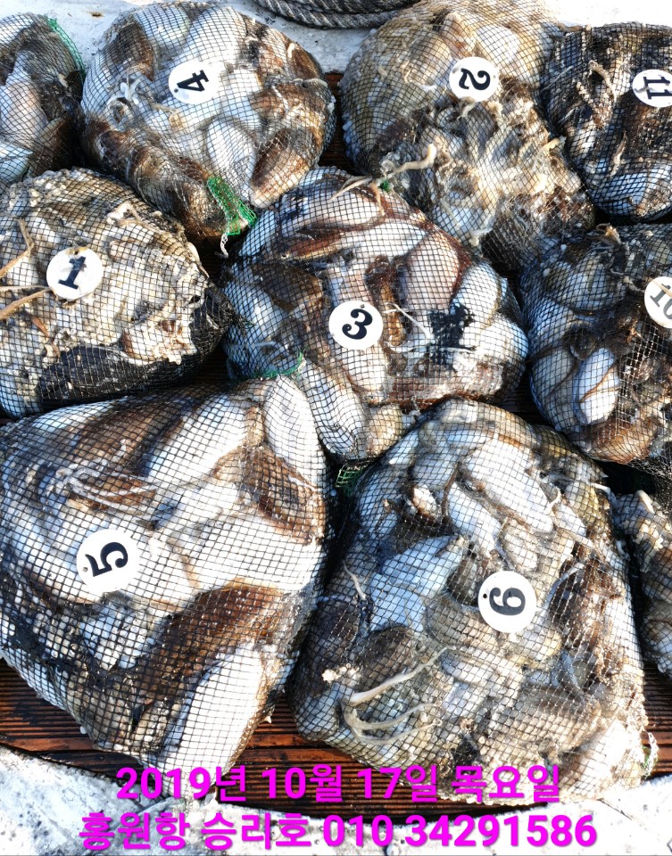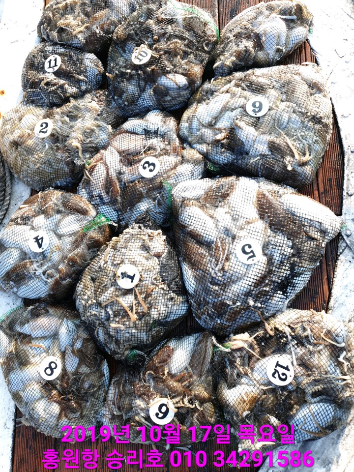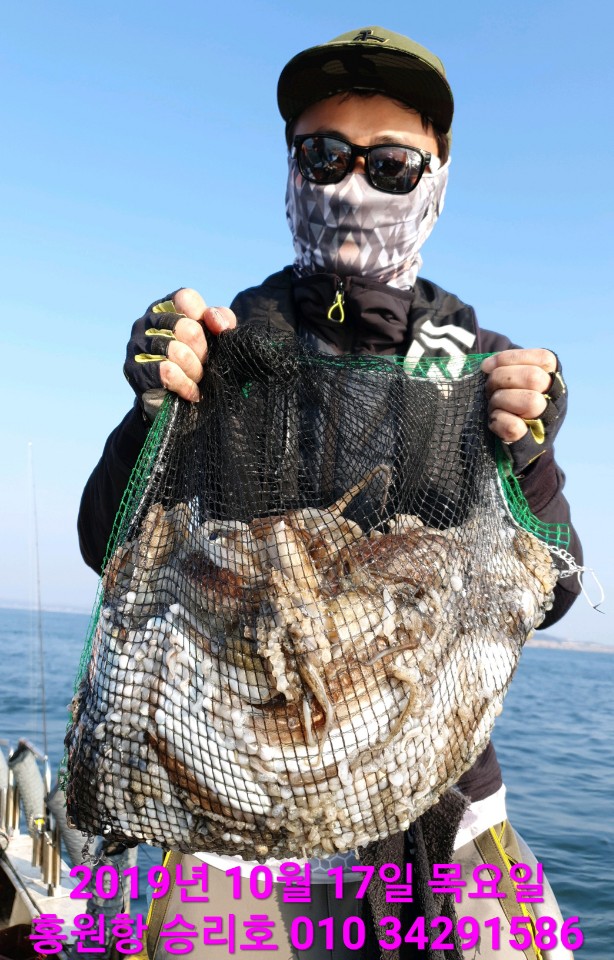 10월17일 홍원항 **요포선단** (승리호) 오늘도 갑&쭈 만~족~한~ 망태기조황입니다!!