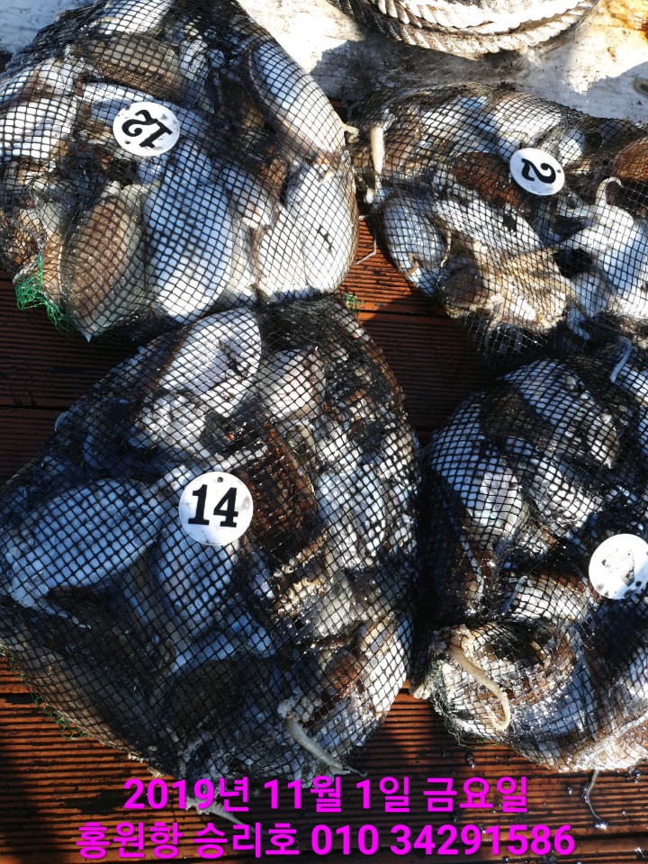 오늘도 승리호 김선장님 쭈꾸미 보다는 대~포~알 갑오징어 포인트에서 낚은 빵~빵~한 망태기는 대~만~족 조황입니다!!