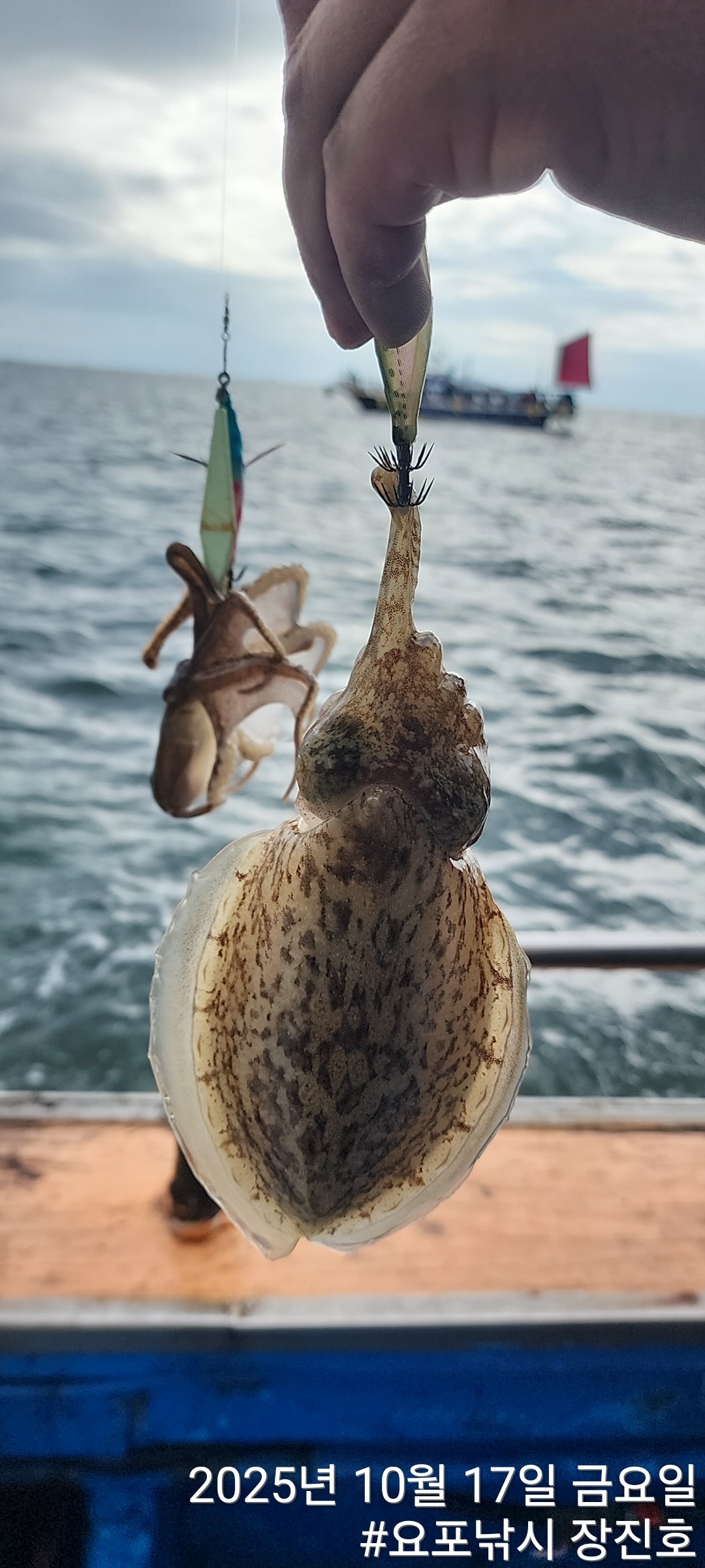 오늘도 요포선단(제1선단) 장진호 김선장님 *갑오징어* 포인트 공략도 성공적인 망태기 조황입니다!!